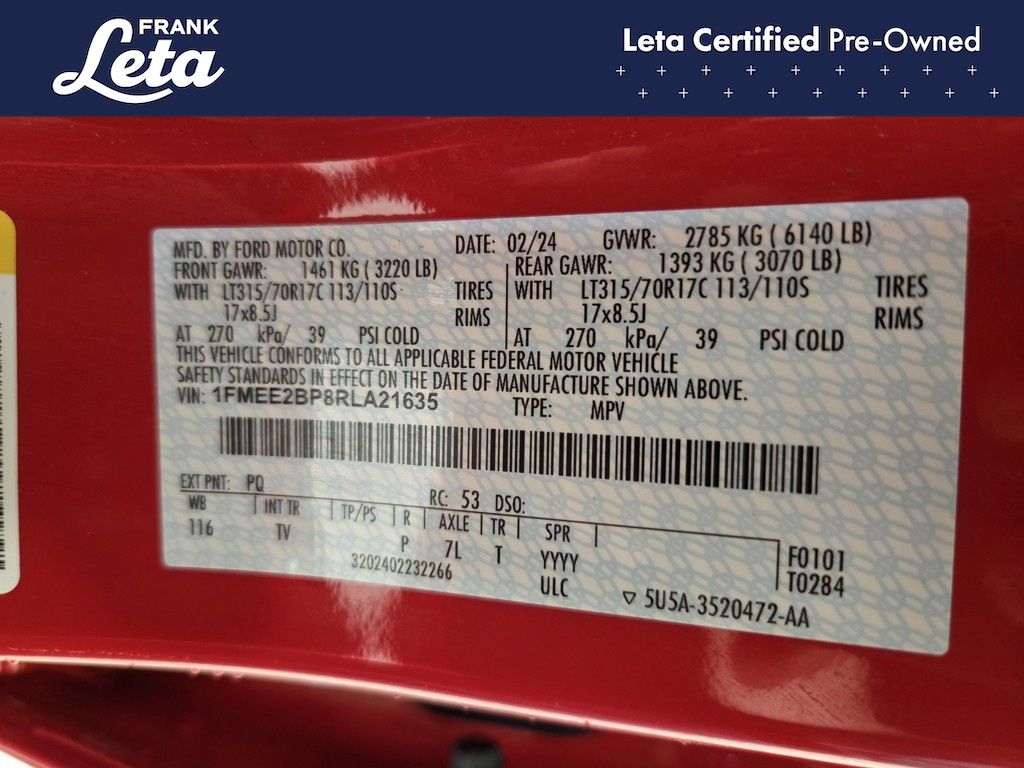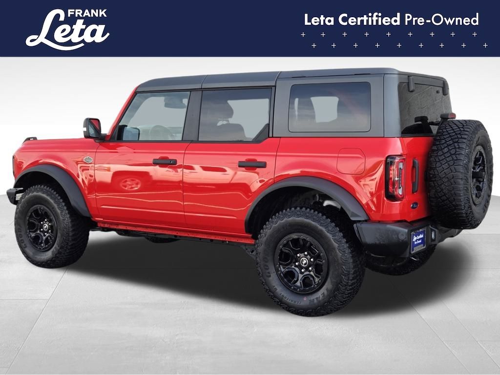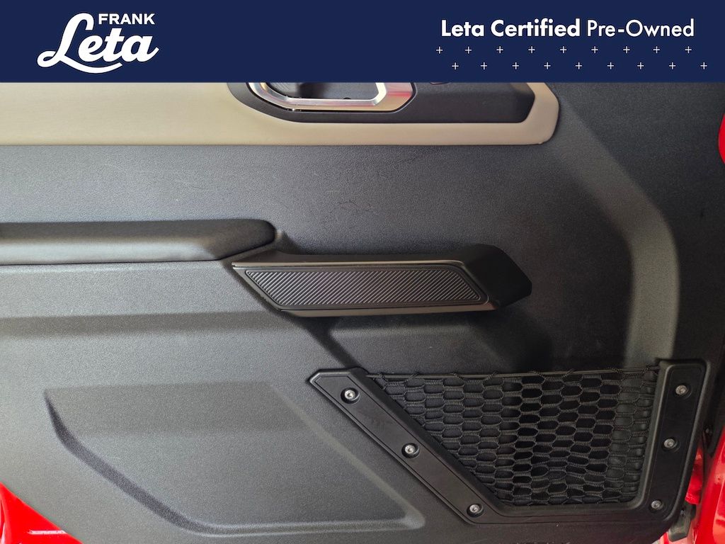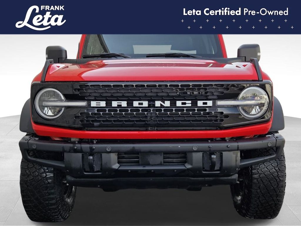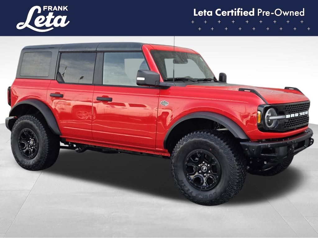 CARFAX One-Owner. 2024 Ford Bronco Wildtrak Race Red Bronco Wildtrak, Frank Leta Certified Certified, 2.7L EcoBoost V6, 10-Speed Automatic, 4WD, Race Red, Black Onyx w/Marine Grade Vinyl Bucket Seats, 10 Speakers w/Subwoofer, 360-Degree Camera, Adaptive Cruise Control, Additional Sound Deadening, Auto-dimming Rear-View mirror, Carbonized Gray Molded-In-Color Hard Top, Equipment Group 354A High/Lux Package, Evasive Steering Assist, Exterior Parking Camera Rear, Front dual zone A/C, Front fog lights, Front Parking Sensors, Front Row Top Panels Storage Bag, Fully automatic headlights, Hard Top Sound Deadening Headliner, Heated Leather-Trimmed/Vinyl Bucket Seats, Heated Steering Wheel, Information on Demand Panel, Navigation system: Connected Navigation, Radio: B&O Sound System by Bang & Olufsen, Rear-Window Defroster & Washer, Sideview Mirrors, Universal Garage Door Opener, Wheels: 17" Black High Gloss-Painted Aluminum, Wireless Charging Pad, 4-Wheel Disc Brakes, 4.7 Axle Ratio, ABS brakes, Air Conditioning, AM/FM radio: SiriusXM with 360L, AM/FM Stereo, Auto High-beam Headlights, Automatic temperature control, Brake assist, Compass, Connected Navigation, Delay-off headlights, Driver door bin, Driver vanity mirror, Dual front impact airbags, Dual front side impact airbags, Electronic Stability Control, Emergency communication system: 911 Assist, Front & Rear Floor Liners w/o Carpet Floor Mats, Front anti-roll bar, Front Bucket Seats, Front Center Armrest, Front License Plate Bracket, Front reading lights, Front wheel independent suspension, Heated door mirrors, Heated front seats, Illuminated entry, Integrated roll-over protection, Leather Shift Knob, Low tire pressure warning, Occupant sensing airbag, Outside temperature display, Overhead airbag, Overhead console, Panic alarm, Passenger door bin, Passenger vanity mirror, Power door mirrors, Power steering, Power windows, Radio data system, Remote keyless entry, Security system, SiriusXM Radio w/360L, Speed control, Split folding rear seat, Steering wheel mounted audio controls, SYNC 4, Tachometer, Telescoping steering wheel, Tilt steering wheel, Traction control, Trip computer, Variably intermittent wipers, Voltmeter, Bronco Wildtrak, 2.7L EcoBoost V6, 10-Speed Automatic, 4WD, Race Red, Black Onyx w/Marine Grade Vinyl Bucket Seats, 10 Speakers w/Subwoofer, 360-Degree Camera, Adaptive Cruise Control, Additional Sound Deadening, Auto-dimming Rear-View mirror, Carbonized Gray Molded-In-Color Hard Top, Equipment Group 354A High/Lux Package, Evasive Steering Assist, Exterior Parking Camera Rear, Front dual zone A/C, Front fog lights, Front Parking Sensors, Front Row Top Panels Storage Bag, Fully automatic headlights, Hard Top Sound Deadening Headliner, Heated Leather-Trimmed/Vinyl Bucket Seats, Heated Steering Wheel, Information on Demand Panel, Navigation system: Connected Navigation, Radio: B&O Sound System by Bang & Olufsen, Rear-Window Defroster & Washer, Sideview Mirrors, Universal Garage Door Opener, Wheels: 17" Black High Gloss-Painted Aluminum, Wireless Charging Pad. 2.7L EcoBoost V6 10-Speed Automatic 4WD 4D Sport Utility Odometer is 7465 miles below market average!