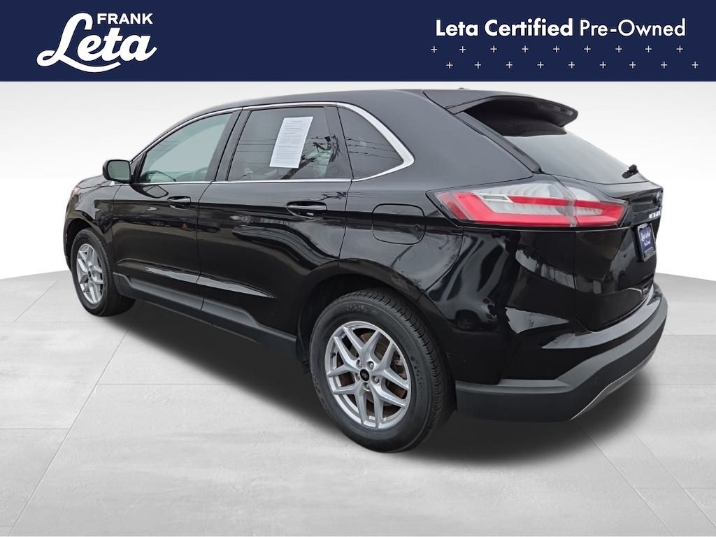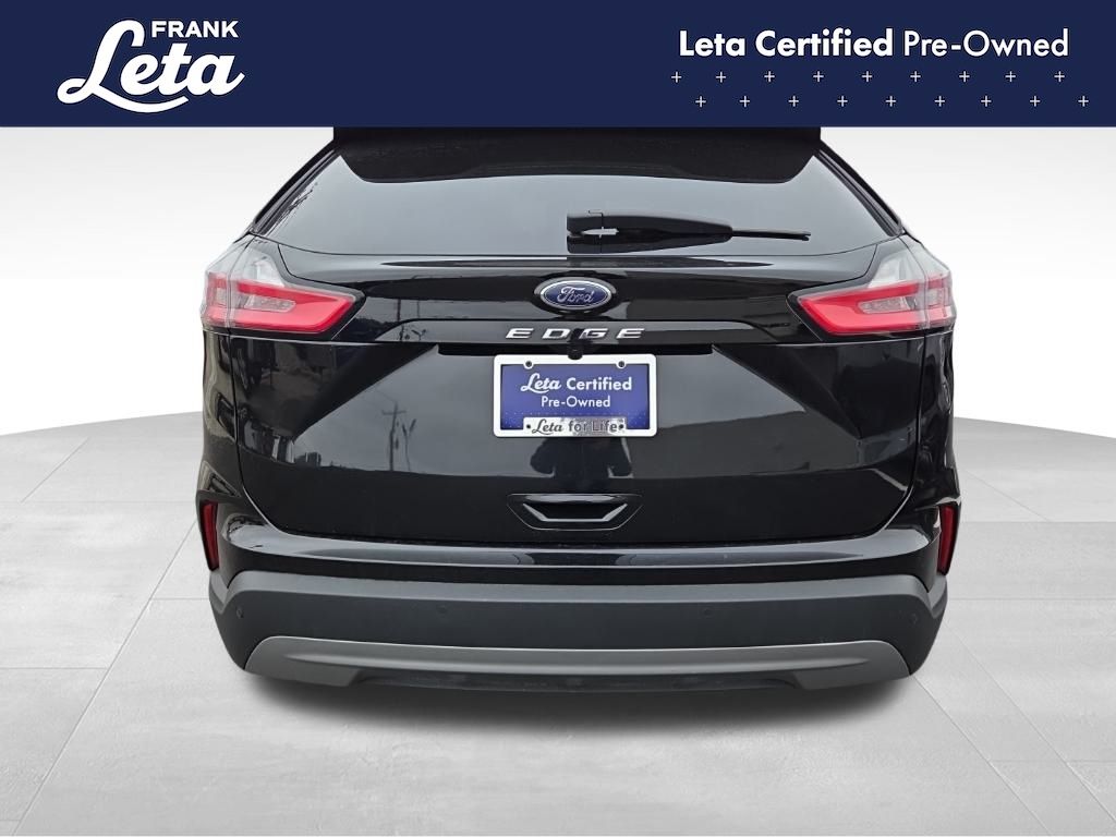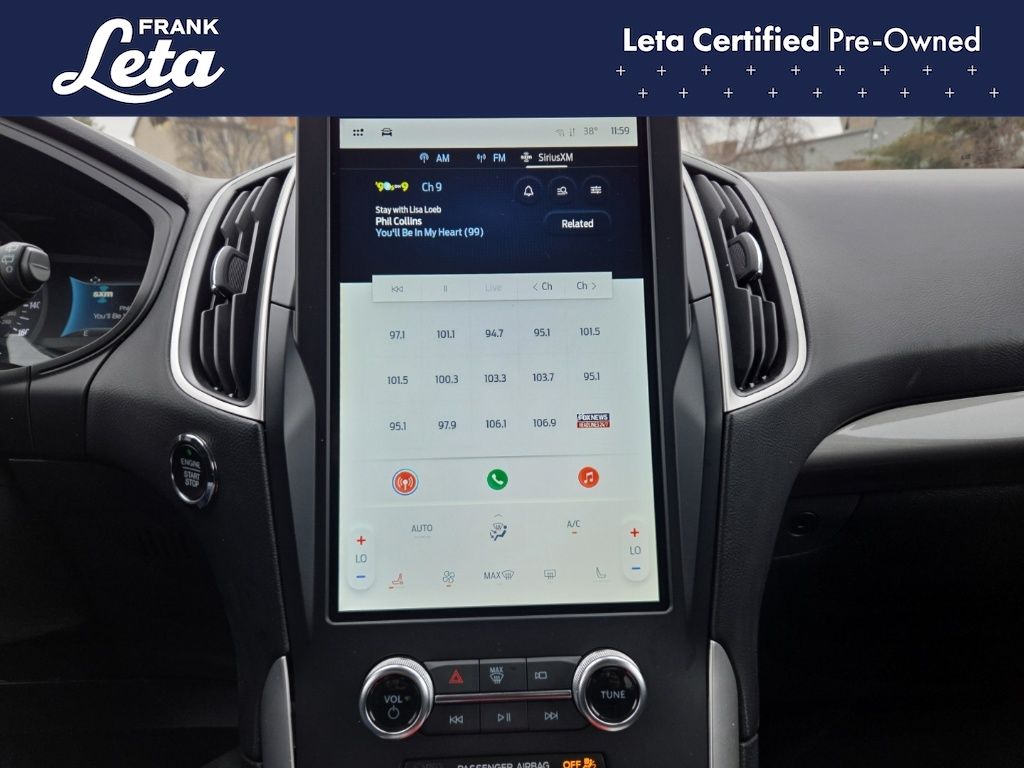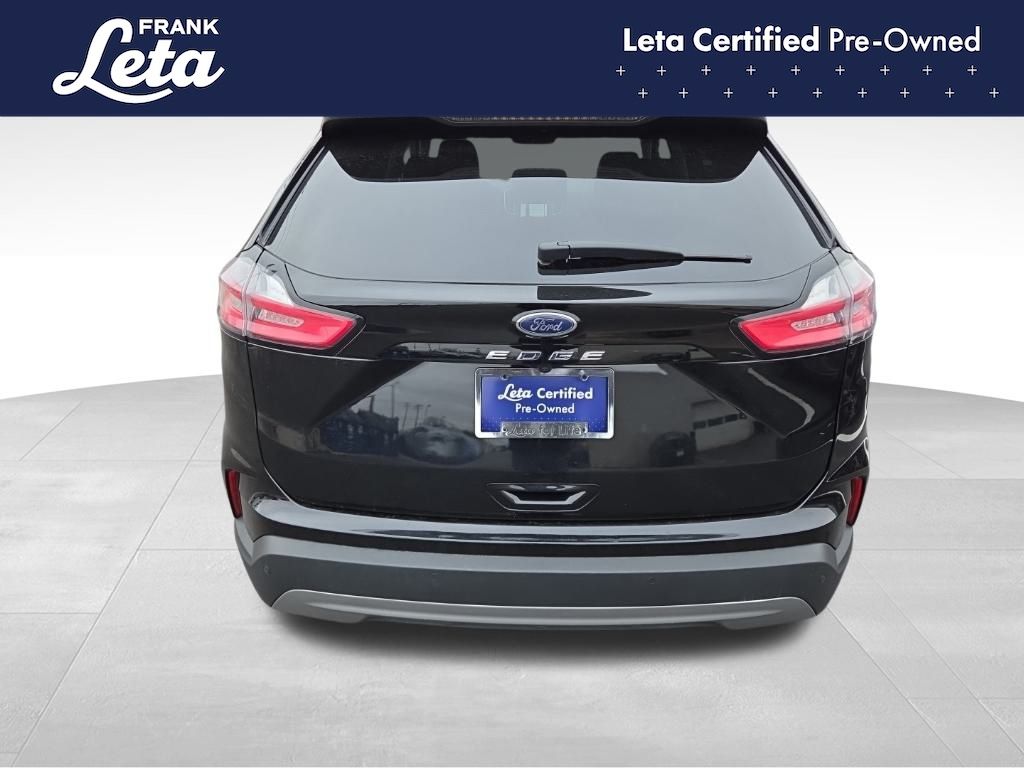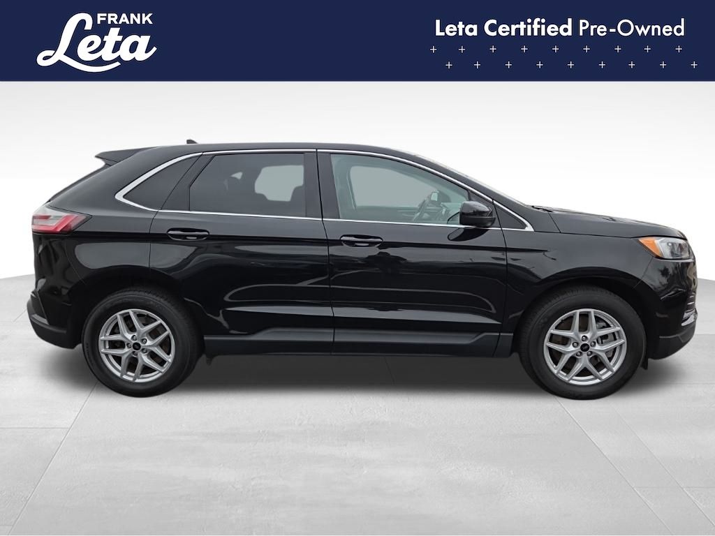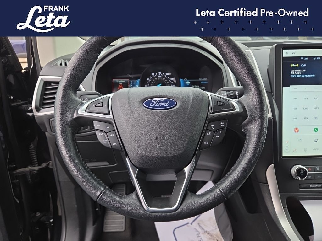 CARFAX One-Owner. 2024 Ford Edge SEL Black Metallic Edge SEL, Frank Leta Certified Certified, EcoBoost 2.0L I4 GTDi DOHC Turbocharged VCT, AWD, Black Metallic, Ebony w/ActiveX Trimmed Heated Bucket Seats, ActiveX Trimmed Heated Bucket Seats, Auto-dimming Rear-View mirror, Front dual zone A/C, Fully automatic headlights, Heated door mirrors, Heated front seats, Leather steering wheel, Power Liftgate, Rear Parking Sensors, Wheels: 18" Sparkle Silver-Painted Aluminum, 3.80 Axle Ratio, 4-Wheel Disc Brakes, 6 Speakers, ABS brakes, Air Conditioning, AM/FM radio: SiriusXM with 360L, AM/FM Stereo, Auto High-beam Headlights, Automatic temperature control, Brake assist, Bumpers: body-color, Compass, Delay-off headlights, Driver door bin, Driver vanity mirror, Dual front impact airbags, Dual front side impact airbags, Electronic Stability Control, Emergency communication system: SYNC 4 911 Assist, FordPass Connect, Four wheel independent suspension, Front anti-roll bar, Front Bucket Seats, Front Center Armrest w/Storage, Front reading lights, Illuminated entry, Knee airbag, Low tire pressure warning, Occupant sensing airbag, Outside temperature display, Overhead airbag, Overhead console, Panic alarm, Passenger door bin, Passenger vanity mirror, Power door mirrors, Power driver seat, Power passenger seat, Power steering, Power windows, Rear anti-roll bar, Rear reading lights, Rear seat center armrest, Rear window defroster, Rear window wiper, Remote keyless entry, SiriusXM w/360L, Speed control, Speed-Sensitive Wipers, Split folding rear seat, Spoiler, Steering wheel mounted audio controls, SYNC 4A w/Enhanced Voice Recognition, Tachometer, Telescoping steering wheel, Tilt steering wheel, Traction control, Trip computer, Variably intermittent wipers, Edge SEL, EcoBoost 2.0L I4 GTDi DOHC Turbocharged VCT, AWD, Black Metallic, Ebony w/ActiveX Trimmed Heated Bucket Seats, ActiveX Trimmed Heated Bucket Seats, Auto-dimming Rear-View mirror, Front dual zone A/C, Fully automatic headlights, Heated door mirrors, Heated front seats, Leather steering wheel, Power Liftgate, Rear Parking Sensors, Wheels: 18" Sparkle Silver-Painted Aluminum. EcoBoost 2.0L I4 GTDi DOHC Turbocharged VCT 8-Speed Automatic AWD 4D Sport Utility 21/28 City/Highway MPG