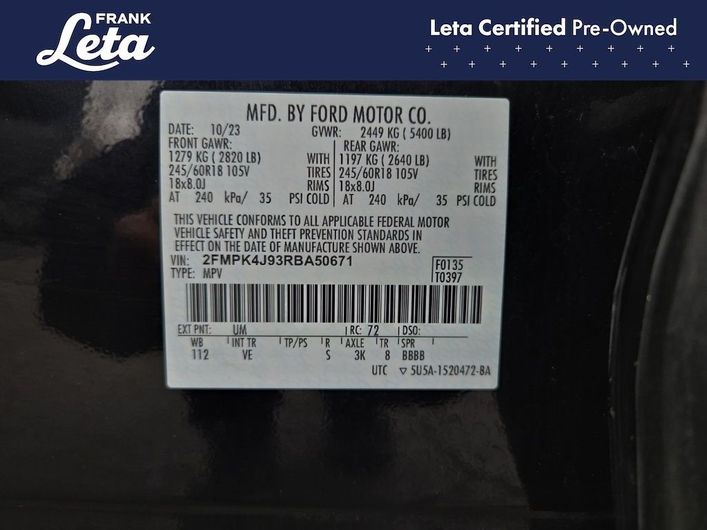 - VIN : 2FMPK4J93RBA50671