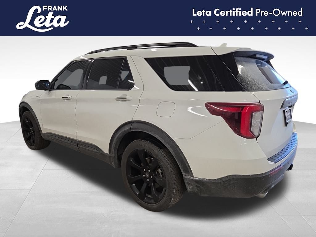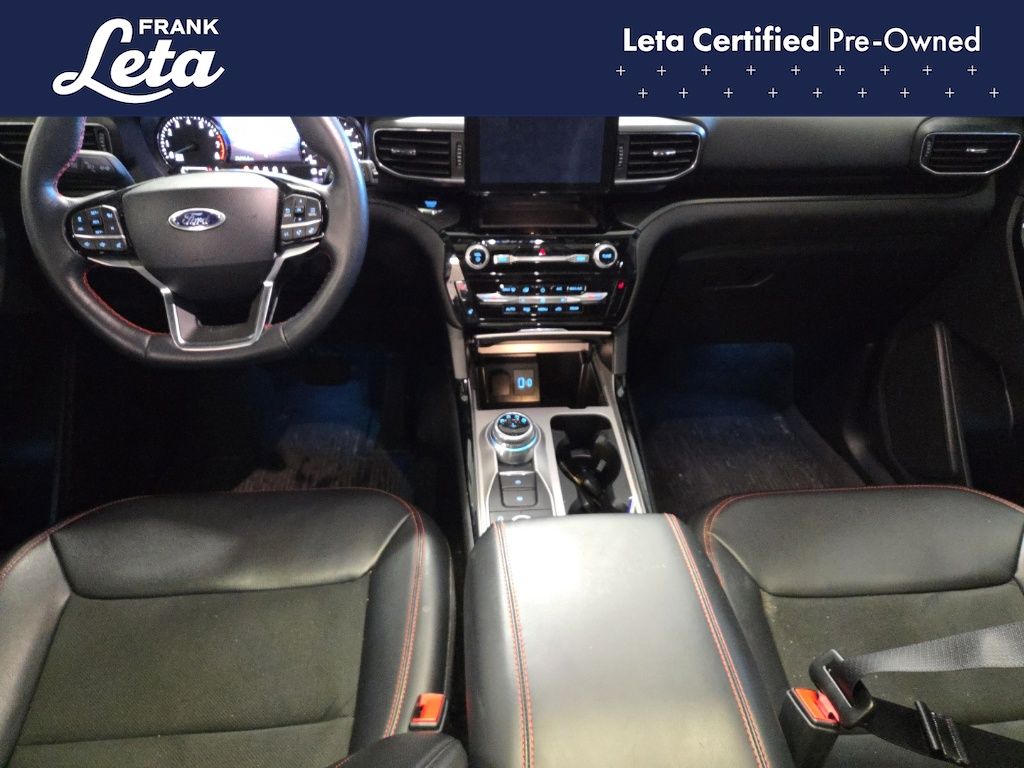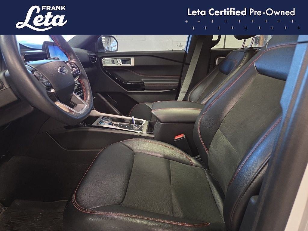 CARFAX One-Owner. 2024 Ford Explorer ST-Line Star White Metallic Tri-Coat Explorer ST-Line, Frank Leta Certified Certified, 2.3L EcoBoost I-4, 4WD, Star White Metallic Tri-Coat, Ebony w/Heated ActiveX Captain's Chairs, 12 Speakers, 3rd row seats: bench, Auto-dimming Rear-View mirror, Class IV Trailer Tow Package, Exterior Parking Camera Rear, FordPass Connect, Front dual zone A/C, Front fog lights, Fully automatic headlights, Heated door mirrors, Heated steering wheel, Navigation System, Power Liftgate, Radio: B&O Sound System by Bang & Olufsen, Rear air conditioning, SYNC 3 Communications & Entertainment System, Twin Panel Moonroof, Voice-Activated Touchscreen Navigation System, Wheels: 21" Aluminum, 3.58 Non-Limited-Slip Rear Axle Ratio, 4-Wheel Disc Brakes, ABS brakes, Air Conditioning, AM/FM radio: SiriusXM, Auto High-beam Headlights, Automatic temperature control, Brake assist, Bumpers: body-color, Compass, Delay-off headlights, Driver door bin, Driver vanity mirror, Dual front impact airbags, Dual front side impact airbags, Electronic Stability Control, Emergency communication system: SYNC 3 911 Assist, Equipment Group 250A, Four wheel independent suspension, Front & Second Row Floor Liners (16B), Front anti-roll bar, Front Bucket Seats, Front Center Armrest, Front reading lights, Heated front seats, Htd ActiveX Trimmed Captain's Chairs w/Miko Insert, Illuminated entry, Knee airbag, Leather steering wheel, Low tire pressure warning, Occupant sensing airbag, Outside temperature display, Overhead airbag, Overhead console, Panic alarm, Passenger door bin, Passenger vanity mirror, Power door mirrors, Power driver seat, Power passenger seat, Power steering, Power windows, Radio data system, Rain sensing wipers, Rear anti-roll bar, Rear reading lights, Rear window defroster, Rear window wiper, Remote keyless entry, Security system, Speed control, Speed-sensing steering, Speed-Sensitive Wipers, Split folding rear seat, Spoiler, Steering wheel mounted audio controls, SYNC 3/Apple CarPlay/Android Auto, Tachometer, Telescoping steering wheel, Tilt steering wheel, Traction control, Trip computer, Variably intermittent wipers, Explorer ST-Line, 2.3L EcoBoost I-4, 4WD, Star White Metallic Tri-Coat, Ebony w/Heated ActiveX Captain's Chairs, 12 Speakers, 3rd row seats: bench, Auto-dimming Rear-View mirror, Class IV Trailer Tow Package, Exterior Parking Camera Rear, FordPass Connect, Front dual zone A/C, Front fog lights, Fully automatic headlights, Heated door mirrors, Heated steering wheel, Navigation System, Power Liftgate, Radio: B&O Sound System by Bang & Olufsen, Rear air conditioning, SYNC 3 Communications & Entertainment System, Twin Panel Moonroof, Voice-Activated Touchscreen Navigation System, Wheels: 21" Aluminum. 2.3L EcoBoost I-4 10-Speed Automatic 4WD 4D Sport Utility 20/27 City/Highway MPG