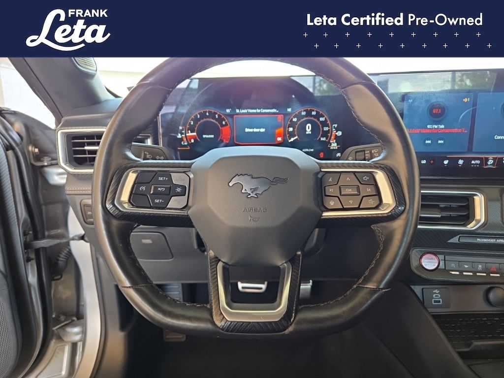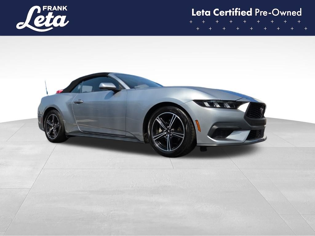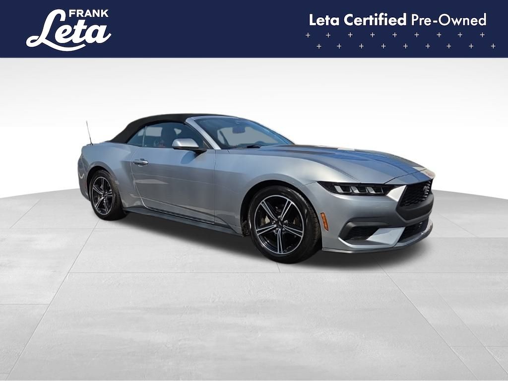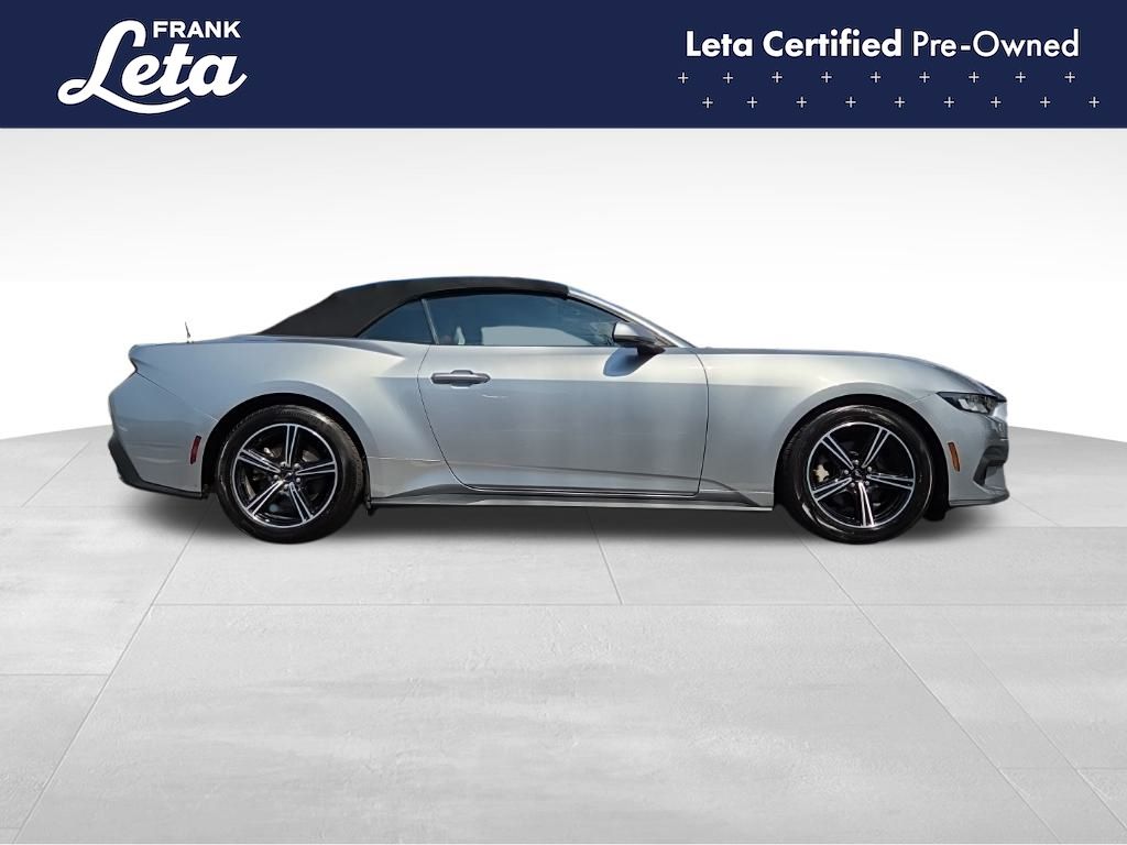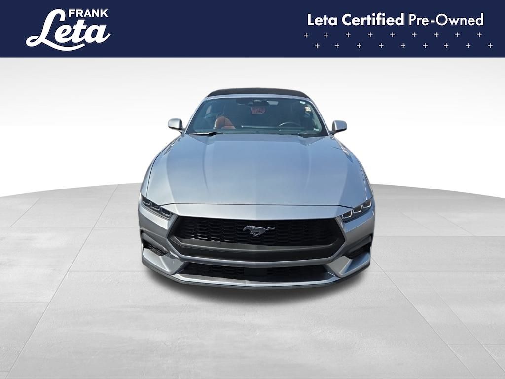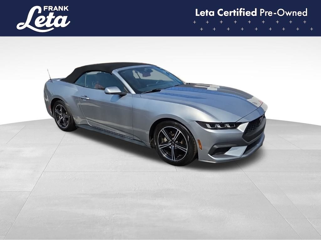 CARFAX One-Owner. 2024 Ford Mustang EcoBoost Premium Iconic Silver Metallic Mustang EcoBoost Premium, 2D Convertible, EcoBoost 2.3L I4 GTDi DOHC Turbocharged VCT, 10-Speed Automatic, Iconic Silver Metallic, Emberglo w/ActiveX Bucket Seats, Auto-dimming Rear-View mirror, Exterior Parking Camera Rear, Front dual zone A/C, Fully automatic headlights, Heated front seats, Heated steering wheel, Power convertible roof, Rear Parking Sensors, Ventilated front seats, Wheels: 18" x 8" Machined-Face Aluminum, 4-Wheel Disc Brakes, 9 Speakers, ABS brakes, Active Anti-Theft System, ActiveX Bucket Seats, Air Conditioning, AM/FM radio: SiriusXM with 360L, AM/FM Stereo, Auto High-beam Headlights, Automatic temperature control, Brake assist, Bumpers: body-color, Climate Controlled Heated/Cooled Front Seats, Compass, Convertible roof lining, Delay-off headlights, Driver door bin, Driver vanity mirror, Dual front impact airbags, Dual front side impact airbags, Electronic Stability Control, Emergency communication system: 911 Assist, Equipment Group 200A Standard Package, Four wheel independent suspension, Front anti-roll bar, Front Bucket Seats, Front Center Armrest, Front reading lights, Glass rear window, HD Radio, Heated door mirrors, Illuminated entry, Knee airbag, Leather Shift Knob, Leather steering wheel, Locking Center Console, Low tire pressure warning, Occupant sensing airbag, Outside temperature display, Overhead console, Panic alarm, Passenger door bin, Passenger vanity mirror, Power door mirrors, Power driver seat, Power passenger seat, Power steering, Power windows, Radio data system, Rain sensing wipers, Rear anti-roll bar, Rear window defroster, Remote keyless entry, Security Package, Security system, SiriusXM w/360L, Speed control, Speed-sensing steering, Speed-Sensitive Wipers, Spoiler, Sport steering wheel, Steering wheel mounted audio controls, SYNC 4.0 QNX, Tachometer, Telescoping steering wheel, Tilt steering wheel, Traction control, Trip computer, Turn signal indicator mirrors, Variably intermittent wipers, Voltmeter, Mustang EcoBoost Premium, 2D Convertible, EcoBoost 2.3L I4 GTDi DOHC Turbocharged VCT, 10-Speed Automatic, Iconic Silver Metallic, Emberglo w/ActiveX Bucket Seats, Auto-dimming Rear-View mirror, Exterior Parking Camera Rear, Front dual zone A/C, Fully automatic headlights, Heated front seats, Heated steering wheel, Power convertible roof, Rear Parking Sensors, Ventilated front seats, Wheels: 18" x 8" Machined-Face Aluminum. EcoBoost 2.3L I4 GTDi DOHC Turbocharged VCT 10-Speed Automatic RWD 2D Convertible 22/33 City/Highway MPG