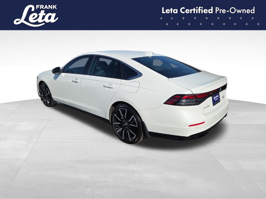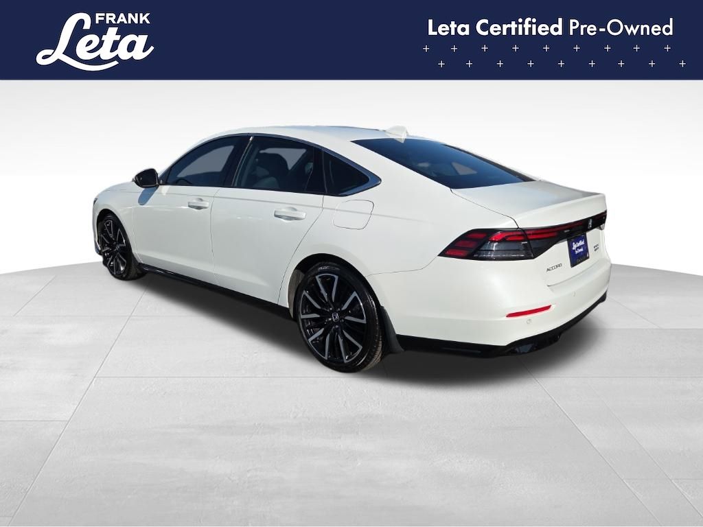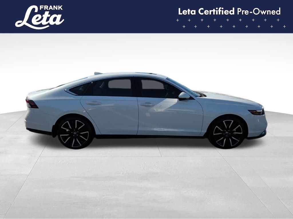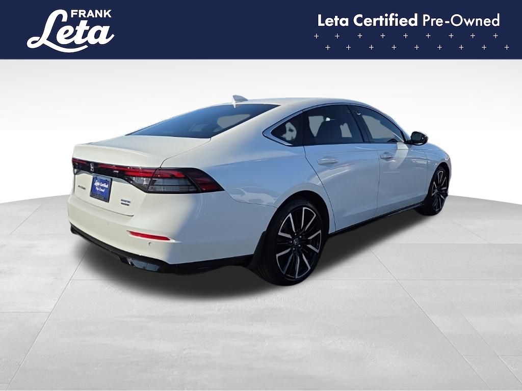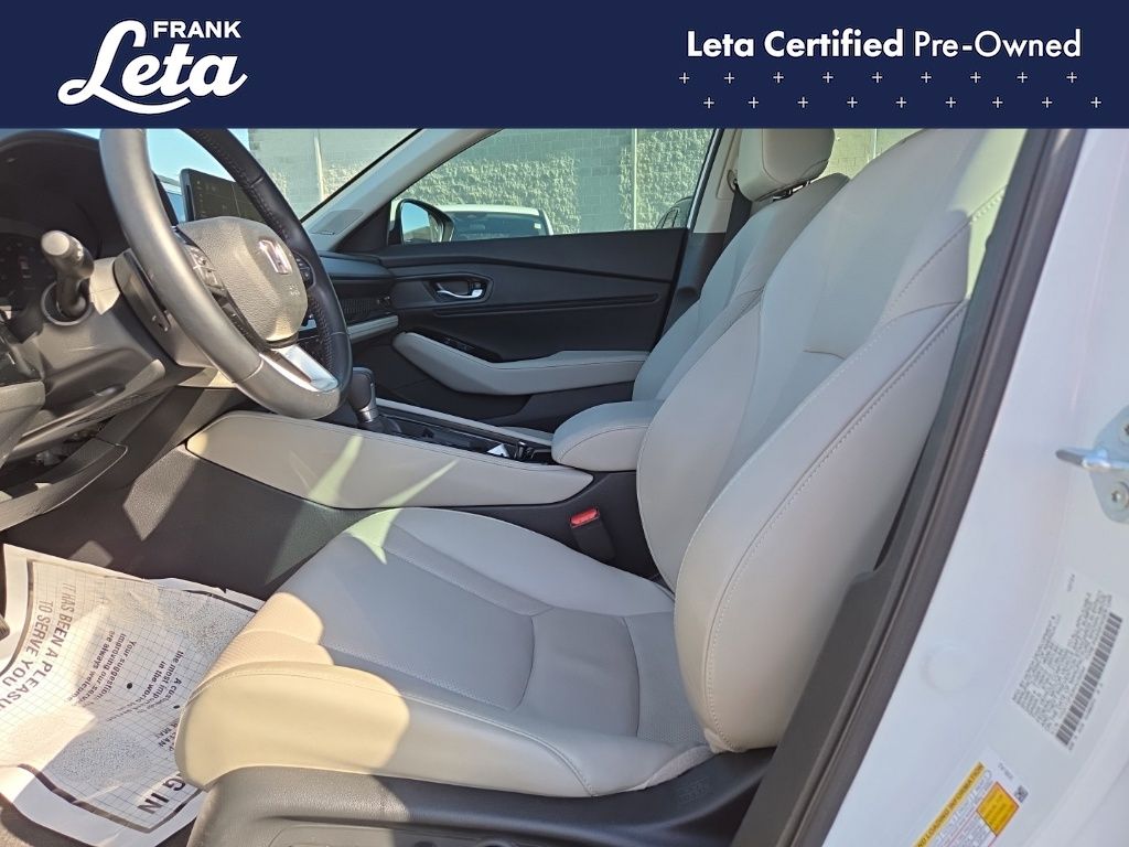 CARFAX One-Owner. 2024 Honda Accord Hybrid Touring Platinum White Pearl Accord Hybrid Touring, Frank Leta Certified Certified, 2.0L 16V DOHC, Platinum White Pearl, Gray w/Leather-Trimmed Seat Trim, Adaptive Cruise Control: Adaptive Cruise Control (ACC) with Low-Speed Follow, Apple CarPlay/Android Auto, Auto-dimming Rear-View mirror, Blind Spot Information (BSI) System warning, Bose Premium Sound System, Exterior Parking Camera Rear, Front dual zone A/C, Fully automatic headlights, Heads-Up Display, Heated front seats, Heated rear seats, Lane departure: Lane Keeping Assist System (LKAS) active, Memory seat, Navigation System, Power moonroof, Ventilated front seats, Wheels: 19" x 8.5J Berlina Black, 12 Speakers, 4-Wheel Disc Brakes, ABS brakes, Adaptive suspension, Air Conditioning, AM/FM radio, Auto High-beam Headlights, Automatic temperature control, Brake assist, Bumpers: body-color, Compass, Delay-off headlights, Driver door bin, Driver vanity mirror, Dual front impact airbags, Dual front side impact airbags, Electronic Stability Control, Emergency communication system: HondaLink, Four wheel independent suspension, Front anti-roll bar, Front Bucket Seats, Front Center Armrest, Front reading lights, Heated & Ventilated Front Bucket Seats, Heated door mirrors, Illuminated entry, Knee airbag, Leather Shift Knob, Leather steering wheel, Leather-Trimmed Seat Trim, Low tire pressure warning, Occupant sensing airbag, Outside temperature display, Overhead airbag, Overhead console, Panic alarm, Passenger door bin, Passenger vanity mirror, Power door mirrors, Power driver seat, Power passenger seat, Power steering, Power windows, Radio data system, Rain sensing wipers, Rear anti-roll bar, Rear reading lights, Rear seat center armrest, Rear side impact airbag, Rear window defroster, Remote keyless entry, Security system, Speed control, Speed-sensing steering, Speed-Sensitive Wipers, Split folding rear seat, Steering wheel mounted audio controls, Telescoping steering wheel, Tilt steering wheel, Traction control, Trip computer, Turn signal indicator mirrors, Variably intermittent wipers, Accord Hybrid Touring, 2.0L 16V DOHC, Platinum White Pearl, Black w/Leather-Trimmed Seat Trim, Adaptive Cruise Control: Adaptive Cruise Control (ACC) with Low-Speed Follow, Apple CarPlay/Android Auto, Auto-dimming Rear-View mirror, Blind Spot Information (BSI) System warning, Bose Premium Sound System, Exterior Parking Camera Rear, Front dual zone A/C, Fully automatic headlights, Heads-Up Display, Heated front seats, Heated rear seats, Lane departure: Lane Keeping Assist System (LKAS) active, Memory seat, Navigation System, Power moonroof, Ventilated front seats, Wheels: 19" x 8.5J Berlina Black. 2.0L 16V DOHC eCVT FWD 4D Sedan 46/41 City/Highway MPG