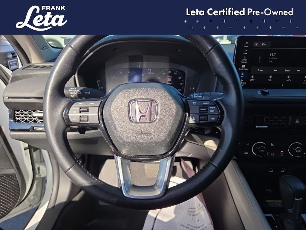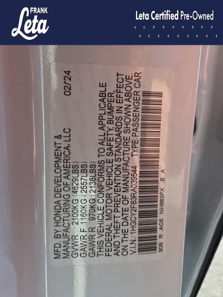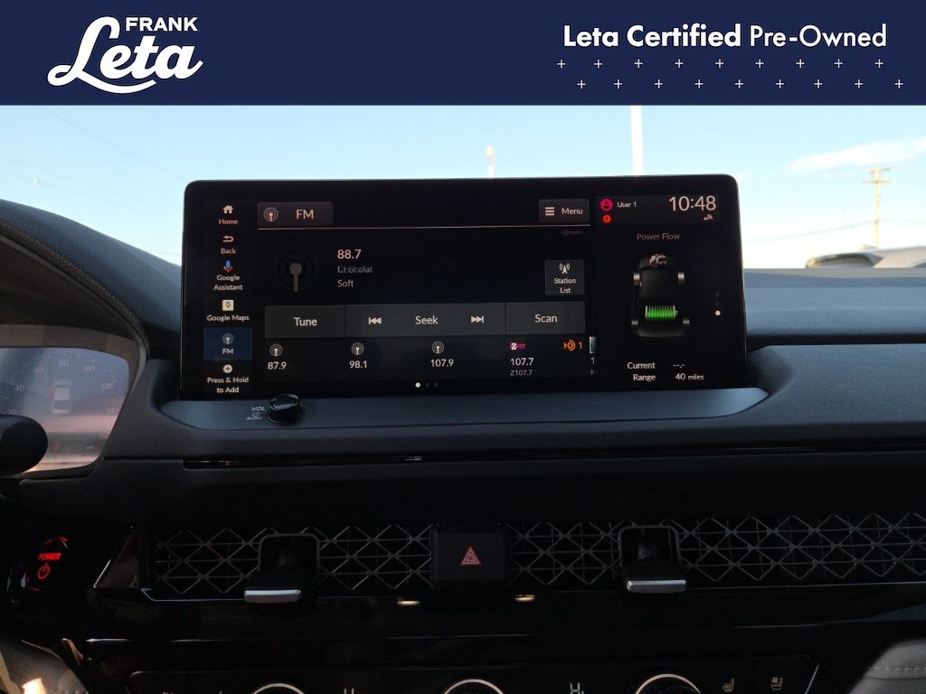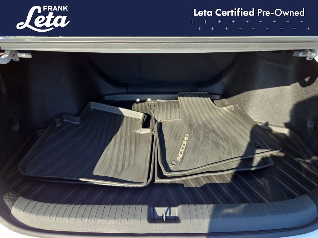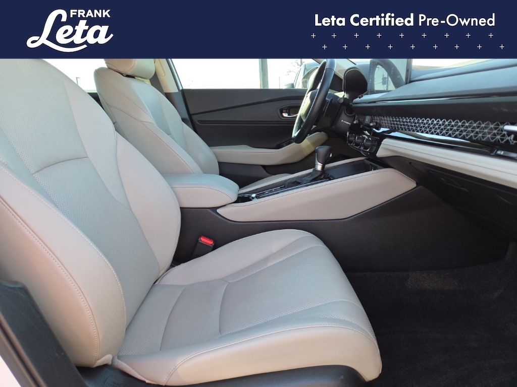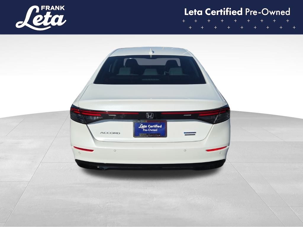 CARFAX One-Owner. 2024 Honda Accord Hybrid Touring Platinum White Pearl Accord Hybrid Touring, Frank Leta Certified Certified, 2.0L 16V DOHC, Platinum White Pearl, Gray w/Leather-Trimmed Seat Trim, Adaptive Cruise Control: Adaptive Cruise Control (ACC) with Low-Speed Follow, Apple CarPlay/Android Auto, Auto-dimming Rear-View mirror, Blind Spot Information (BSI) System warning, Bose Premium Sound System, Exterior Parking Camera Rear, Front dual zone A/C, Fully automatic headlights, Heads-Up Display, Heated front seats, Heated rear seats, Lane departure: Lane Keeping Assist System (LKAS) active, Memory seat, Navigation System, Power moonroof, Ventilated front seats, Wheels: 19" x 8.5J Berlina Black, 12 Speakers, 4-Wheel Disc Brakes, ABS brakes, Adaptive suspension, Air Conditioning, AM/FM radio, Auto High-beam Headlights, Automatic temperature control, Brake assist, Bumpers: body-color, Compass, Delay-off headlights, Driver door bin, Driver vanity mirror, Dual front impact airbags, Dual front side impact airbags, Electronic Stability Control, Emergency communication system: HondaLink, Four wheel independent suspension, Front anti-roll bar, Front Bucket Seats, Front Center Armrest, Front reading lights, Heated & Ventilated Front Bucket Seats, Heated door mirrors, Illuminated entry, Knee airbag, Leather Shift Knob, Leather steering wheel, Leather-Trimmed Seat Trim, Low tire pressure warning, Occupant sensing airbag, Outside temperature display, Overhead airbag, Overhead console, Panic alarm, Passenger door bin, Passenger vanity mirror, Power door mirrors, Power driver seat, Power passenger seat, Power steering, Power windows, Radio data system, Rain sensing wipers, Rear anti-roll bar, Rear reading lights, Rear seat center armrest, Rear side impact airbag, Rear window defroster, Remote keyless entry, Security system, Speed control, Speed-sensing steering, Speed-Sensitive Wipers, Split folding rear seat, Steering wheel mounted audio controls, Telescoping steering wheel, Tilt steering wheel, Traction control, Trip computer, Turn signal indicator mirrors, Variably intermittent wipers, Accord Hybrid Touring, 2.0L 16V DOHC, Platinum White Pearl, Black w/Leather-Trimmed Seat Trim, Adaptive Cruise Control: Adaptive Cruise Control (ACC) with Low-Speed Follow, Apple CarPlay/Android Auto, Auto-dimming Rear-View mirror, Blind Spot Information (BSI) System warning, Bose Premium Sound System, Exterior Parking Camera Rear, Front dual zone A/C, Fully automatic headlights, Heads-Up Display, Heated front seats, Heated rear seats, Lane departure: Lane Keeping Assist System (LKAS) active, Memory seat, Navigation System, Power moonroof, Ventilated front seats, Wheels: 19" x 8.5J Berlina Black. 2.0L 16V DOHC eCVT FWD 4D Sedan 46/41 City/Highway MPG