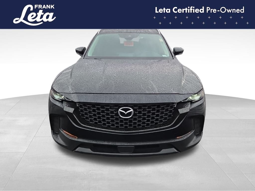 CARFAX One-Owner. 2024 Mazda CX-50 2.5 S Preferred Package Jet Black Mica CX-50 2.5 S Preferred Package, SKYACTIV 2.5L 4-Cylinder DOHC 16V, AWD, Jet Black Mica, Black w/Gray w/Half Leatherette Seat Trim, AppLink/Apple CarPlay and Android Auto, Exterior Parking Camera Rear, Fully automatic headlights, Heated door mirrors, Heated front seats, Power Liftgate, Wheels: 17" x 7J Aluminum Alloy, 4-Wheel Disc Brakes, 4.367 Axle Ratio, 8 Speakers, ABS brakes, Air Conditioning, AM/FM radio, Auto High-beam Headlights, Automatic temperature control, Brake assist, Bumpers: body-color, Delay-off headlights, Driver door bin, Driver vanity mirror, Dual front impact airbags, Dual front side impact airbags, Electronic Stability Control, Emergency communication system: MAZDA CONNECT, Front anti-roll bar, Front Bucket Seats, Front Center Armrest, Front dual zone A/C, Front reading lights, Front wheel independent suspension, Half Leatherette Seat Trim, Heated Front Bucket Seats, Illuminated entry, Knee airbag, Leather Shift Knob, Leather steering wheel, Low tire pressure warning, Occupant sensing airbag, Outside temperature display, Overhead airbag, Overhead console, Panic alarm, Passenger door bin, Passenger vanity mirror, Power door mirrors, Power driver seat, Power steering, Power windows, Radio data system, Radio: AM/FM/HD Audio System, Rain sensing wipers, Rear seat center armrest, Rear window defroster, Rear window wiper, Remote keyless entry, Speed control, Speed-sensing steering, Split folding rear seat, Spoiler, Steering wheel mounted audio controls, Tachometer, Telescoping steering wheel, Tilt steering wheel, Traction control, Trip computer, Turn signal indicator mirrors, Variably intermittent wipers, CX-50 2.5 S Preferred Package, SKYACTIV 2.5L 4-Cylinder DOHC 16V, AWD, Jet Black Mica, Black w/Gray w/Half Leatherette Seat Trim, AppLink/Apple CarPlay and Android Auto, Exterior Parking Camera Rear, Fully automatic headlights, Heated door mirrors, Heated front seats, Power Liftgate, Wheels: 17" x 7J Aluminum Alloy. SKYACTIV 2.5L 4-Cylinder DOHC 16V 6-Speed Automatic AWD 4D Sport Utility 24/30 City/Highway MPG