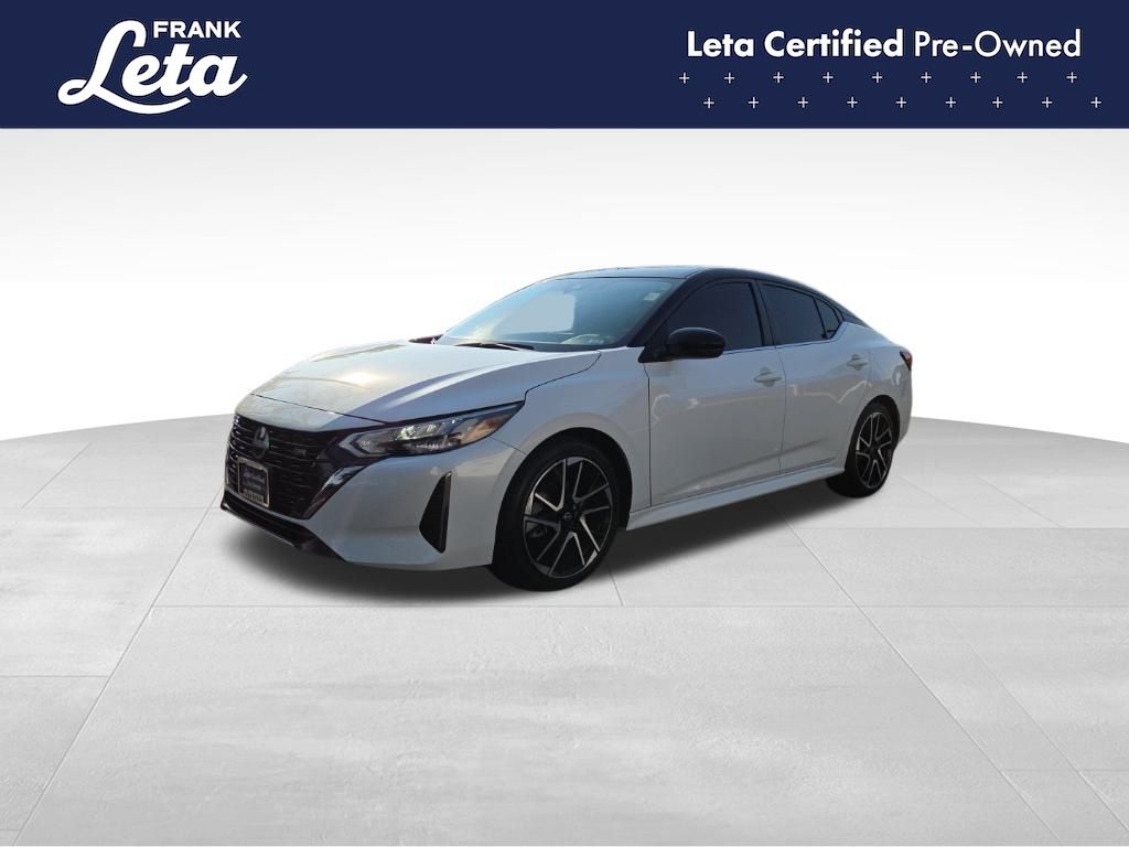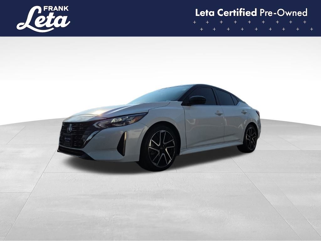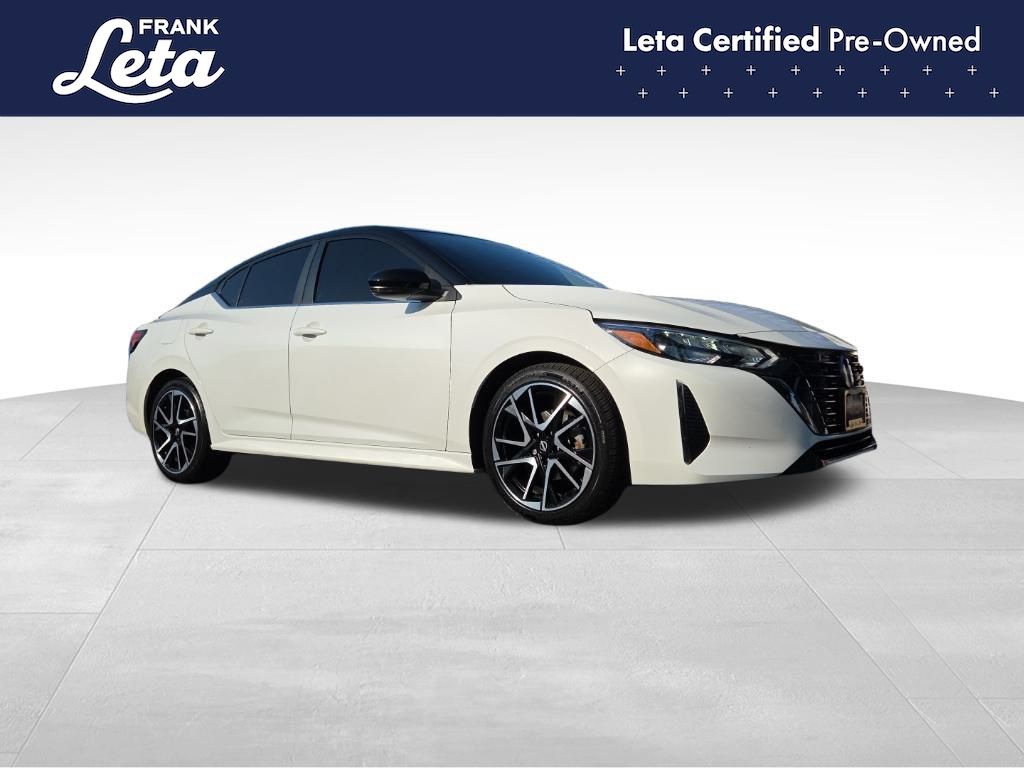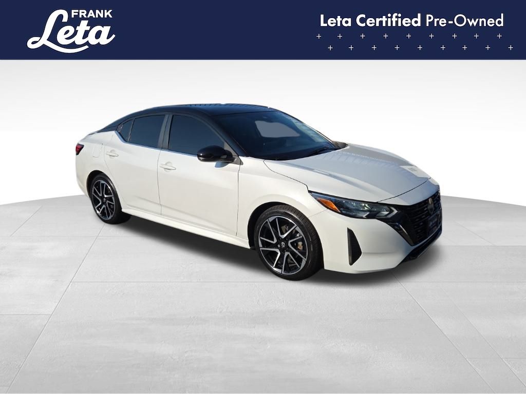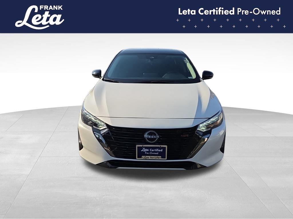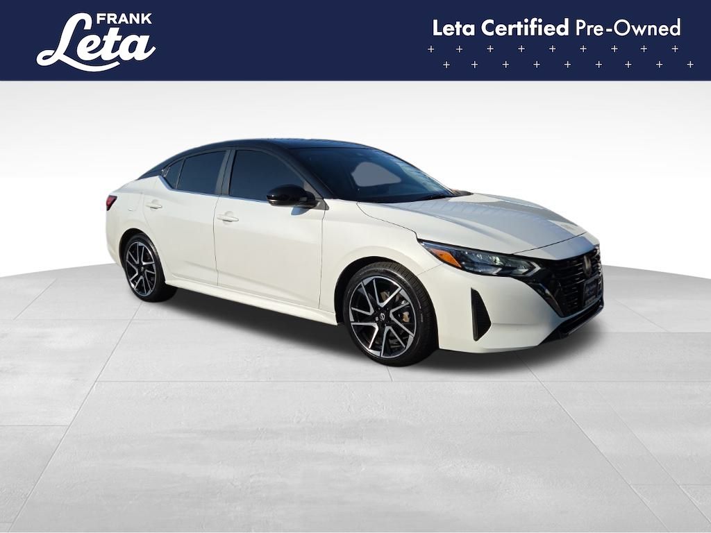 CARFAX One-Owner. 2024 Nissan Sentra SR Aspen White Tricoat/Super Black Sentra SR, Frank Leta Certified Certified, 2.0L I4 DOHC, CVT with Xtronic, FWD, Aspen White Tricoat/Super Black, Sport w/Sport Cloth Seat Trim or Leatherette Seat Trim, 18" Alloy Wheels, Blind Spot Warning, Front dual zone A/C, Fully automatic headlights, Heated front seats, NissanConnect featuring Apple CarPlay and Android Auto, Rear Parking Sensors, 2-Tone Premium Paint, 4-Wheel Disc Brakes, 6 Speakers, ABS brakes, Air Conditioning, AM/FM radio: SiriusXM, Auto High-beam Headlights, Automatic temperature control, Brake assist, Bumpers: body-color, Carpeted Floor Mats w/Trunk Mat, Clear Rear Bumper Protector, Delay-off headlights, Door Sill Plates, Driver door bin, Driver vanity mirror, Dual front impact airbags, Dual front side impact airbags, Electronic Stability Control, Four wheel independent suspension, Front anti-roll bar, Front Bucket Seats, Front Center Armrest, Front reading lights, Heated door mirrors, Heated Front Bucket Seats, Illuminated entry, Knee airbag, Leather Shift Knob, Leather steering wheel, Low tire pressure warning, Map Pocket Lighting, Nissan USB Charging Cable Set, Occupant sensing airbag, Outside temperature display, Overhead airbag, Overhead console, Panic alarm, Passenger door bin, Passenger vanity mirror, Power door mirrors, Power steering, Power windows, Radio data system, Radio: AM/FM w/RDS/MP3/Aux-In, Rear anti-roll bar, Rear seat center armrest, Rear side impact airbag, Rear window defroster, Remote keyless entry, Security system, Speed control, Speed-sensing steering, Split folding rear seat, Spoiler, Sport Cloth Seat Trim, Steering wheel mounted audio controls, Tachometer, Technical Spec Change 2, Telescoping steering wheel, Tilt steering wheel, Traction control, Trip computer, Turn signal indicator mirrors, Variably intermittent wipers, Sentra SR, 2.0L I4 DOHC, CVT with Xtronic, FWD, Aspen White Tricoat/Super Black, Sport w/Sport Cloth Seat Trim or Leatherette Seat Trim, 18" Alloy Wheels, Blind Spot Warning, Front dual zone A/C, Fully automatic headlights, Heated front seats, NissanConnect featuring Apple CarPlay and Android Auto, Rear Parking Sensors. 2.0L I4 DOHC CVT with Xtronic FWD 4D Sedan 30/38 City/Highway MPG