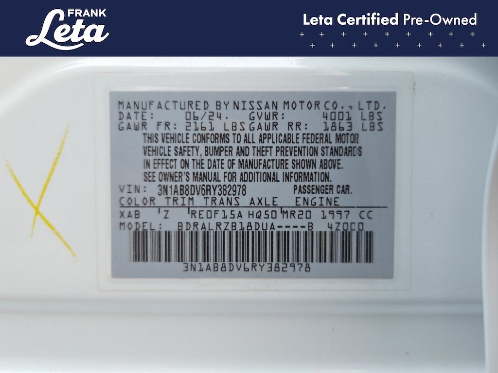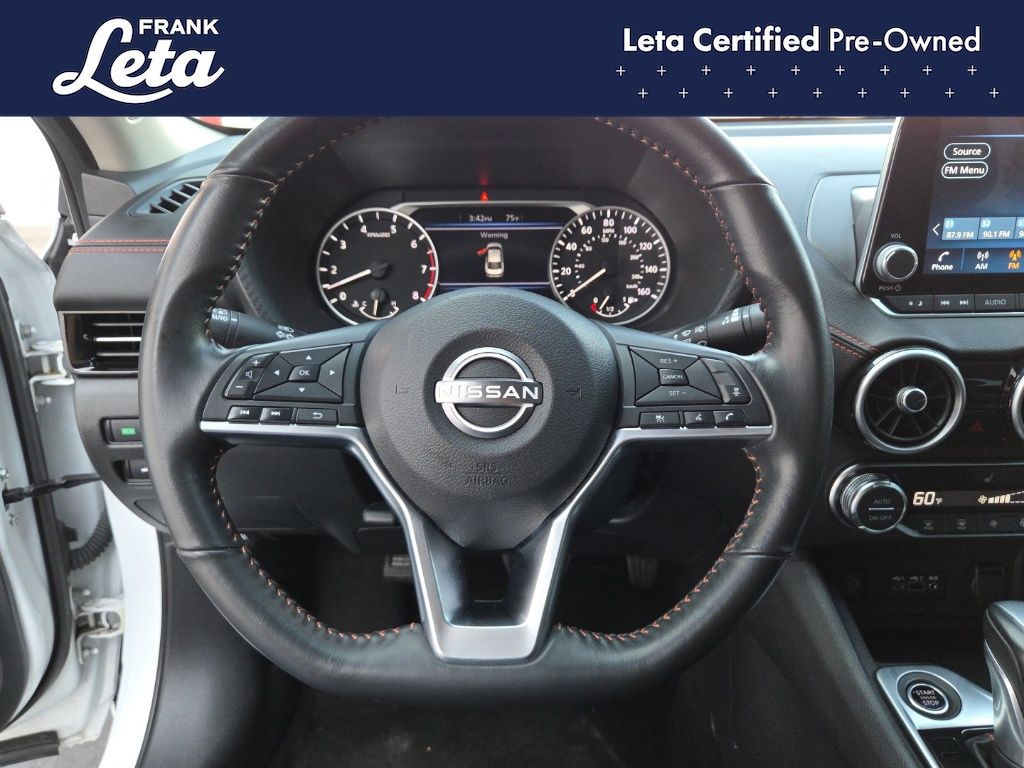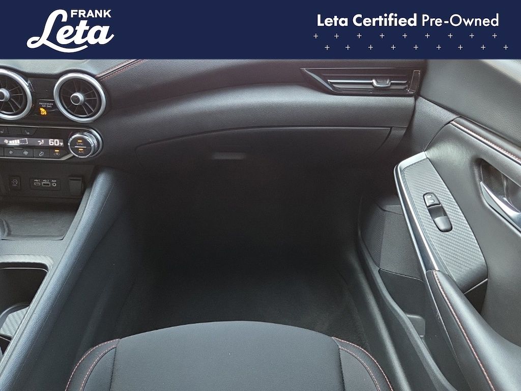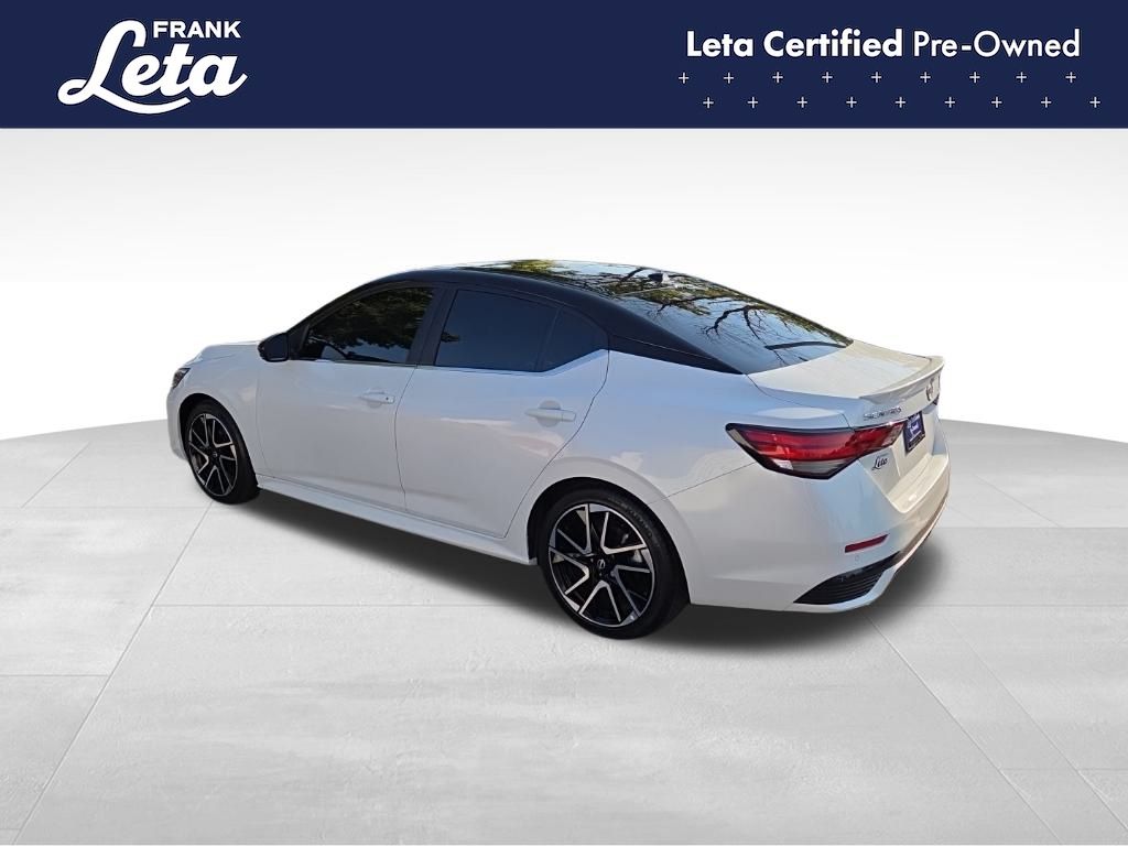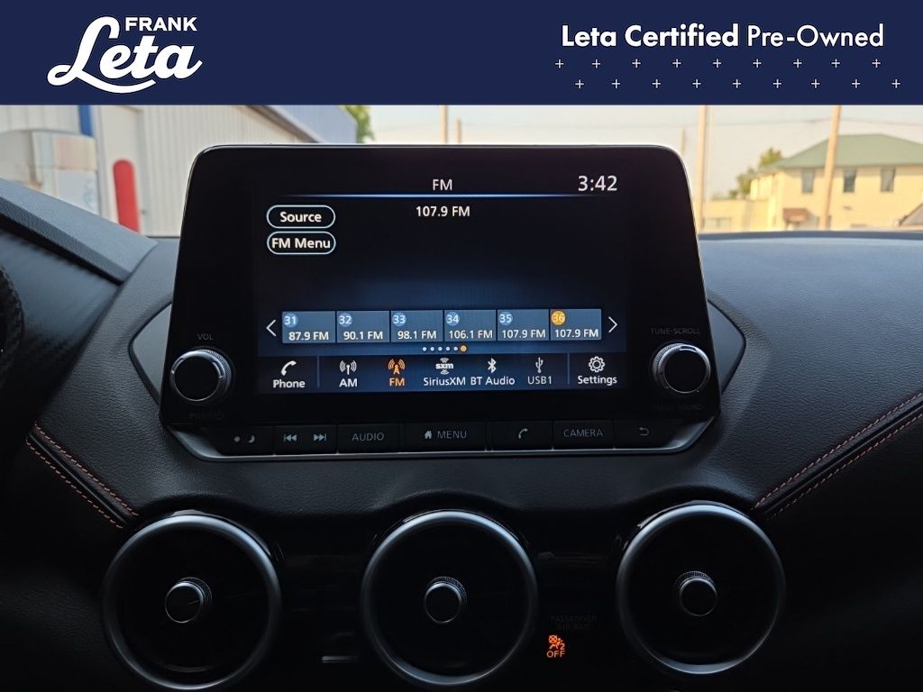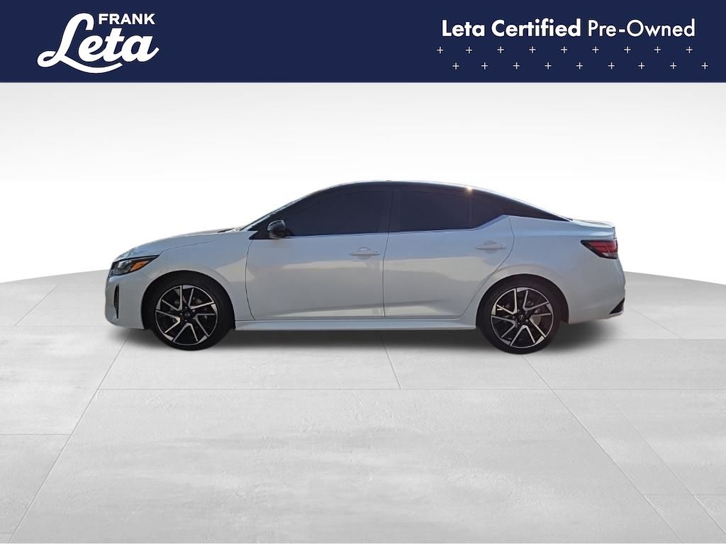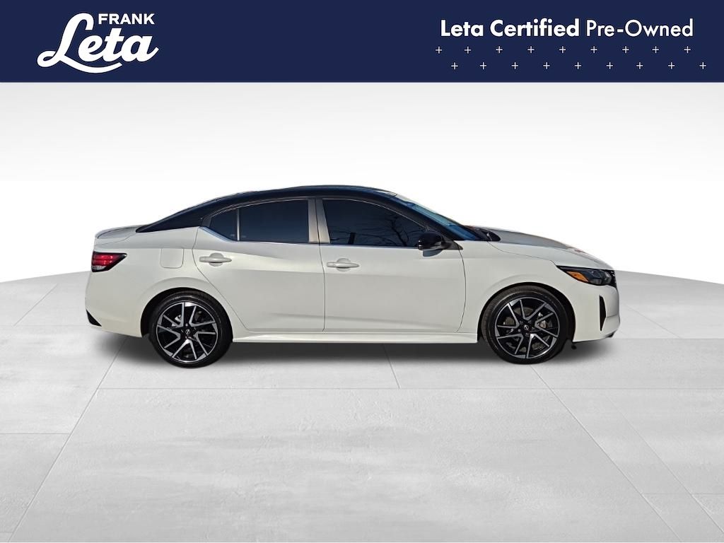 CARFAX One-Owner. 2024 Nissan Sentra SR Aspen White Tricoat/Super Black Sentra SR, Frank Leta Certified Certified, 2.0L I4 DOHC, CVT with Xtronic, FWD, Aspen White Tricoat/Super Black, Sport w/Sport Cloth Seat Trim or Leatherette Seat Trim, 18" Alloy Wheels, Blind Spot Warning, Front dual zone A/C, Fully automatic headlights, Heated front seats, NissanConnect featuring Apple CarPlay and Android Auto, Rear Parking Sensors, 2-Tone Premium Paint, 4-Wheel Disc Brakes, 6 Speakers, ABS brakes, Air Conditioning, AM/FM radio: SiriusXM, Auto High-beam Headlights, Automatic temperature control, Brake assist, Bumpers: body-color, Carpeted Floor Mats w/Trunk Mat, Clear Rear Bumper Protector, Delay-off headlights, Door Sill Plates, Driver door bin, Driver vanity mirror, Dual front impact airbags, Dual front side impact airbags, Electronic Stability Control, Four wheel independent suspension, Front anti-roll bar, Front Bucket Seats, Front Center Armrest, Front reading lights, Heated door mirrors, Heated Front Bucket Seats, Illuminated entry, Knee airbag, Leather Shift Knob, Leather steering wheel, Low tire pressure warning, Map Pocket Lighting, Nissan USB Charging Cable Set, Occupant sensing airbag, Outside temperature display, Overhead airbag, Overhead console, Panic alarm, Passenger door bin, Passenger vanity mirror, Power door mirrors, Power steering, Power windows, Radio data system, Radio: AM/FM w/RDS/MP3/Aux-In, Rear anti-roll bar, Rear seat center armrest, Rear side impact airbag, Rear window defroster, Remote keyless entry, Security system, Speed control, Speed-sensing steering, Split folding rear seat, Spoiler, Sport Cloth Seat Trim, Steering wheel mounted audio controls, Tachometer, Technical Spec Change 2, Telescoping steering wheel, Tilt steering wheel, Traction control, Trip computer, Turn signal indicator mirrors, Variably intermittent wipers, Sentra SR, 2.0L I4 DOHC, CVT with Xtronic, FWD, Aspen White Tricoat/Super Black, Sport w/Sport Cloth Seat Trim or Leatherette Seat Trim, 18" Alloy Wheels, Blind Spot Warning, Front dual zone A/C, Fully automatic headlights, Heated front seats, NissanConnect featuring Apple CarPlay and Android Auto, Rear Parking Sensors. 2.0L I4 DOHC CVT with Xtronic FWD 4D Sedan 30/38 City/Highway MPG