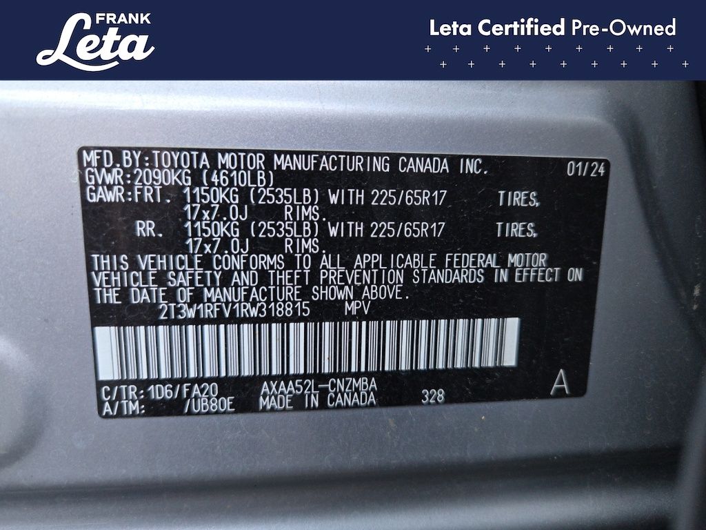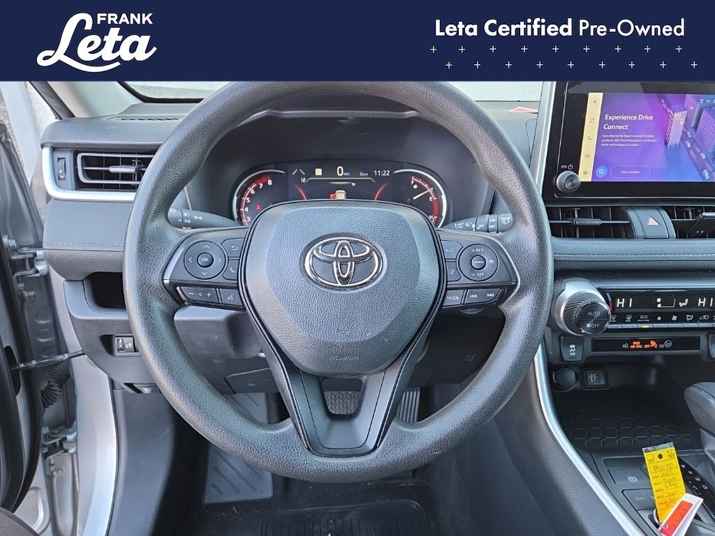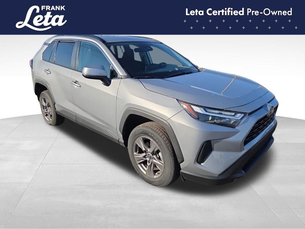 CARFAX One-Owner. 2024 Toyota RAV4 XLE Silver Sky Metallic RAV4 XLE, Frank Leta Certified Certified, 2.5L 4-Cylinder DOHC Dual VVT-i, Silver Sky Metallic, Black w/Fabric Seat Trim, Exterior Parking Camera Rear, Front dual zone A/C, Fully automatic headlights, Heated door mirrors, Wheels: 17" 5-Spoke Silver Alloy, 4-Wheel Disc Brakes, 6 Speakers, ABS brakes, Air Conditioning, AM/FM radio: SiriusXM, Auto High-beam Headlights, Automatic temperature control, Axle Ratio: 3.177, Brake assist, Bumpers: body-color, Delay-off headlights, Driver door bin, Driver vanity mirror, Dual front impact airbags, Dual front side impact airbags, Electronic Stability Control, Emergency communication system: Safety Connect (10-year trial), Fabric Seat Trim, Four wheel independent suspension, Front anti-roll bar, Front Bucket Seats, Front Center Armrest, Front reading lights, Illuminated entry, Knee airbag, Low tire pressure warning, Occupant sensing airbag, Outside temperature display, Overhead airbag, Overhead console, Panic alarm, Passenger door bin, Passenger vanity mirror, Power door mirrors, Power driver seat, Power steering, Power windows, Radio data system, Radio: AM/FM/XM Audio System, Rear anti-roll bar, Rear seat center armrest, Rear window defroster, Rear window wiper, Remote keyless entry, Speed control, Speed-sensing steering, Split folding rear seat, Spoiler, Steering wheel mounted audio controls, Tachometer, Telescoping steering wheel, Tilt steering wheel, Traction control, Trip computer, Turn signal indicator mirrors, Variably intermittent wipers, RAV4 XLE, 2.5L 4-Cylinder DOHC Dual VVT-i, Silver Sky Metallic, Black w/Fabric Seat Trim, Exterior Parking Camera Rear, Front dual zone A/C, Fully automatic headlights, Heated door mirrors, Wheels: 17" 5-Spoke Silver Alloy. 2.5L 4-Cylinder DOHC Dual VVT-i 8-Speed Automatic FWD 4D Sport Utility 27/35 City/Highway MPG