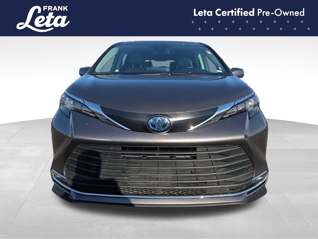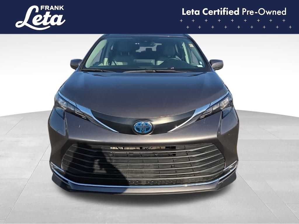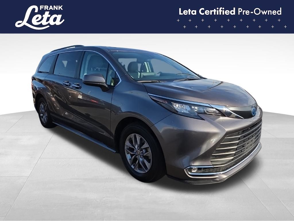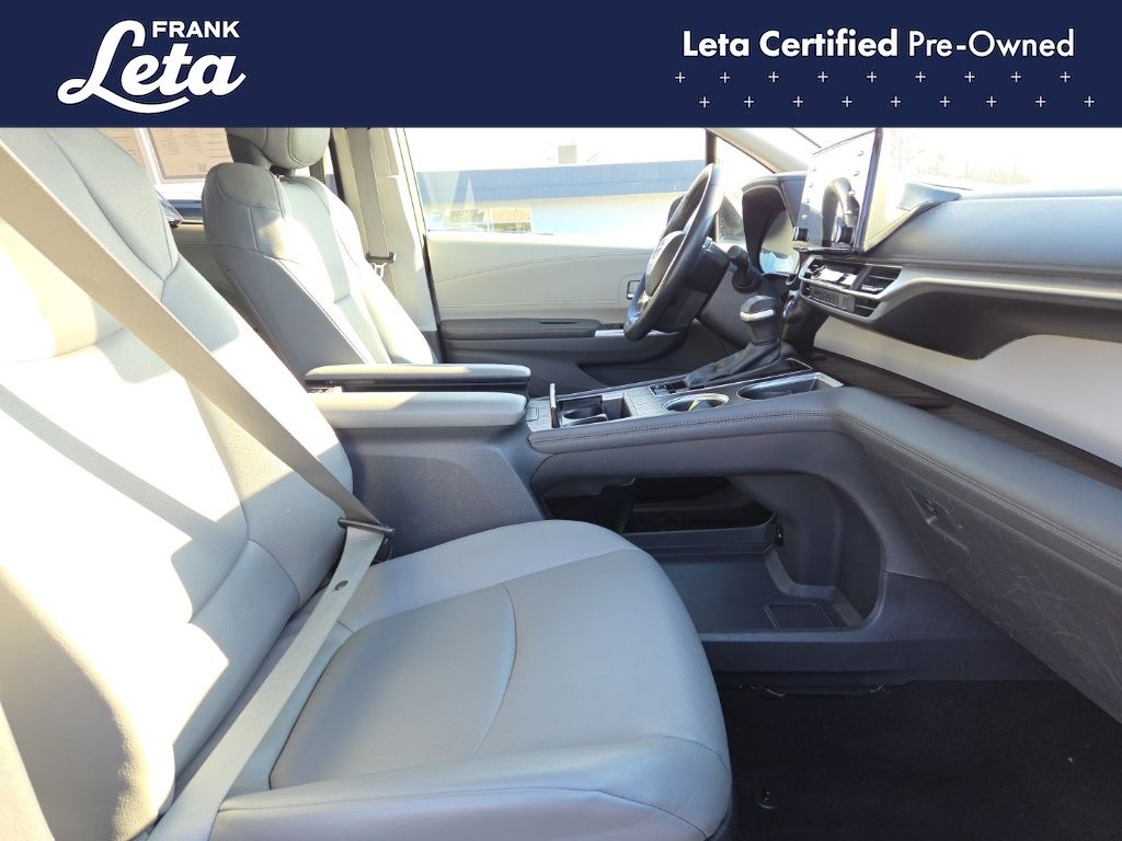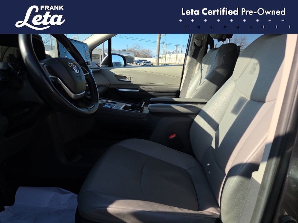 CARFAX One-Owner. 2024 Toyota Sienna XLE 7 Passenger Predawn Gray Mica Sienna XLE 7 Passenger, Frank Leta Certified Certified, 2.5L I4, Predawn Gray Mica, Graphite w/SofTex Seat Trim, 17" Alloy Wheels, 3rd row seats: split-bench, Apple CarPlay/Android Auto, Auto-dimming door mirrors, Auto-dimming Rear-View mirror, Exterior Parking Camera Rear, Front dual zone A/C, Front fog lights, Fully automatic headlights, Garage door transmitter: HomeLink, Heated door mirrors, Heated front seats, Lane Departure Warning System, Power Liftgate, Power moonroof, Rear dual zone A/C, 4-Wheel Disc Brakes, 8 Speakers, ABS brakes, Air Conditioning, AM/FM radio: SiriusXM, Auto High-beam Headlights, Automatic temperature control, Axle Ratio: TBA, Brake assist, Bumpers: body-color, Compass, Delay-off headlights, Door auto-latch, Driver door bin, Driver vanity mirror, Driver's Seat Mounted Armrest, Dual front impact airbags, Dual front side impact airbags, Electronic Stability Control, Emergency communication system: Safety Connect (3-year trial), Four wheel independent suspension, Front anti-roll bar, Front Bucket Seats, Front Heated Bucket Seats, Front reading lights, Illuminated entry, Knee airbag, Leather Shift Knob, Leather steering wheel, Low tire pressure warning, Occupant sensing airbag, Outside temperature display, Overhead airbag, Overhead console, Panic alarm, Passenger door bin, Passenger seat mounted armrest, Passenger vanity mirror, Power door mirrors, Power driver seat, Power passenger seat, Power steering, Power windows, Radio data system, Radio: Audio Plus, Rear air conditioning, Rear anti-roll bar, Rear reading lights, Rear side impact airbag, Rear window defroster, Rear window wiper, Reclining 3rd row seat, Remote keyless entry, SofTex Seat Trim, Speed control, Speed-sensing steering, Split folding rear seat, Spoiler, Steering wheel mounted audio controls, Tachometer, Telescoping steering wheel, Tilt steering wheel, Traction control, Trip computer, Turn signal indicator mirrors, Variably intermittent wipers, Sienna XLE 7 Passenger, 2.5L I4, Predawn Gray Mica, Graphite w/SofTex Seat Trim, 17" Alloy Wheels, 3rd row seats: split-bench, Apple CarPlay/Android Auto, Auto-dimming door mirrors, Auto-dimming Rear-View mirror, Exterior Parking Camera Rear, Front dual zone A/C, Front fog lights, Fully automatic headlights, Garage door transmitter: HomeLink, Heated door mirrors, Heated front seats, Lane Departure Warning System, Power Liftgate, Power moonroof, Rear dual zone A/C. 2.5L I4 CVT FWD 4D Passenger Van 36/36 City/Highway MPG