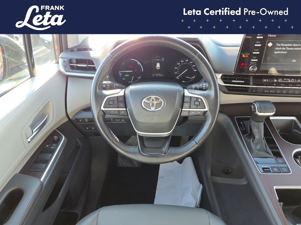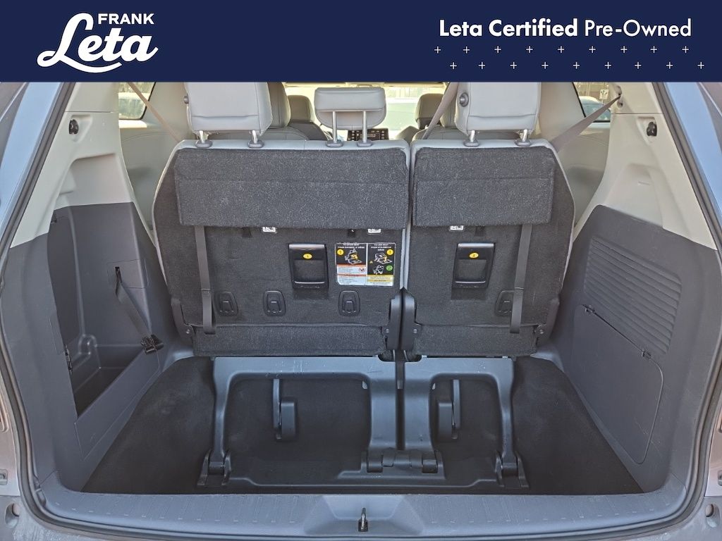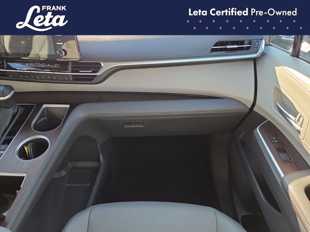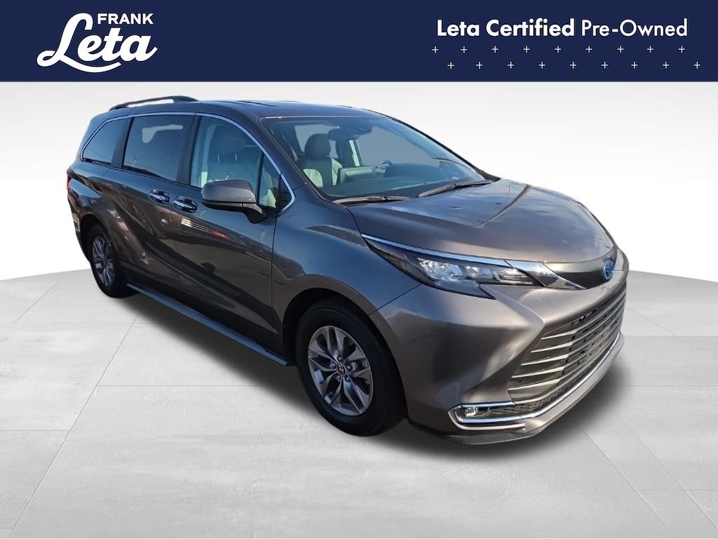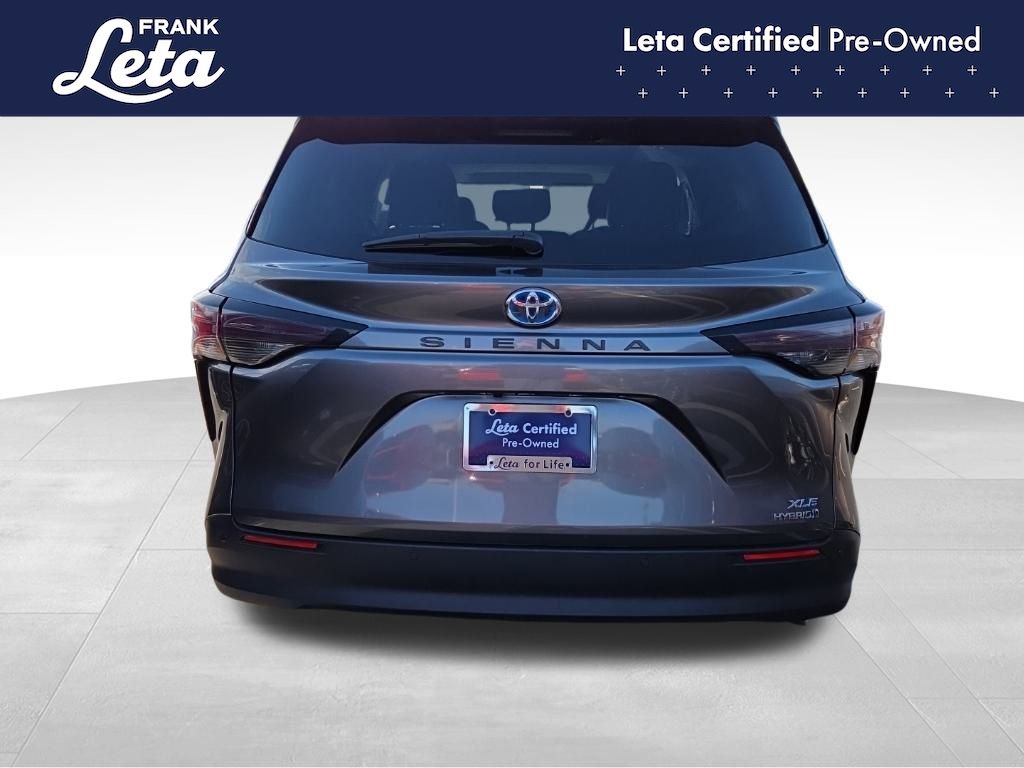 CARFAX One-Owner. 2024 Toyota Sienna XLE 7 Passenger Predawn Gray Mica Sienna XLE 7 Passenger, Frank Leta Certified Certified, 2.5L I4, Predawn Gray Mica, Graphite w/SofTex Seat Trim, 17" Alloy Wheels, 3rd row seats: split-bench, Apple CarPlay/Android Auto, Auto-dimming door mirrors, Auto-dimming Rear-View mirror, Exterior Parking Camera Rear, Front dual zone A/C, Front fog lights, Fully automatic headlights, Garage door transmitter: HomeLink, Heated door mirrors, Heated front seats, Lane Departure Warning System, Power Liftgate, Power moonroof, Rear dual zone A/C, 4-Wheel Disc Brakes, 8 Speakers, ABS brakes, Air Conditioning, AM/FM radio: SiriusXM, Auto High-beam Headlights, Automatic temperature control, Axle Ratio: TBA, Brake assist, Bumpers: body-color, Compass, Delay-off headlights, Door auto-latch, Driver door bin, Driver vanity mirror, Driver's Seat Mounted Armrest, Dual front impact airbags, Dual front side impact airbags, Electronic Stability Control, Emergency communication system: Safety Connect (3-year trial), Four wheel independent suspension, Front anti-roll bar, Front Bucket Seats, Front Heated Bucket Seats, Front reading lights, Illuminated entry, Knee airbag, Leather Shift Knob, Leather steering wheel, Low tire pressure warning, Occupant sensing airbag, Outside temperature display, Overhead airbag, Overhead console, Panic alarm, Passenger door bin, Passenger seat mounted armrest, Passenger vanity mirror, Power door mirrors, Power driver seat, Power passenger seat, Power steering, Power windows, Radio data system, Radio: Audio Plus, Rear air conditioning, Rear anti-roll bar, Rear reading lights, Rear side impact airbag, Rear window defroster, Rear window wiper, Reclining 3rd row seat, Remote keyless entry, SofTex Seat Trim, Speed control, Speed-sensing steering, Split folding rear seat, Spoiler, Steering wheel mounted audio controls, Tachometer, Telescoping steering wheel, Tilt steering wheel, Traction control, Trip computer, Turn signal indicator mirrors, Variably intermittent wipers, Sienna XLE 7 Passenger, 2.5L I4, Predawn Gray Mica, Graphite w/SofTex Seat Trim, 17" Alloy Wheels, 3rd row seats: split-bench, Apple CarPlay/Android Auto, Auto-dimming door mirrors, Auto-dimming Rear-View mirror, Exterior Parking Camera Rear, Front dual zone A/C, Front fog lights, Fully automatic headlights, Garage door transmitter: HomeLink, Heated door mirrors, Heated front seats, Lane Departure Warning System, Power Liftgate, Power moonroof, Rear dual zone A/C. 2.5L I4 CVT FWD 4D Passenger Van 36/36 City/Highway MPG