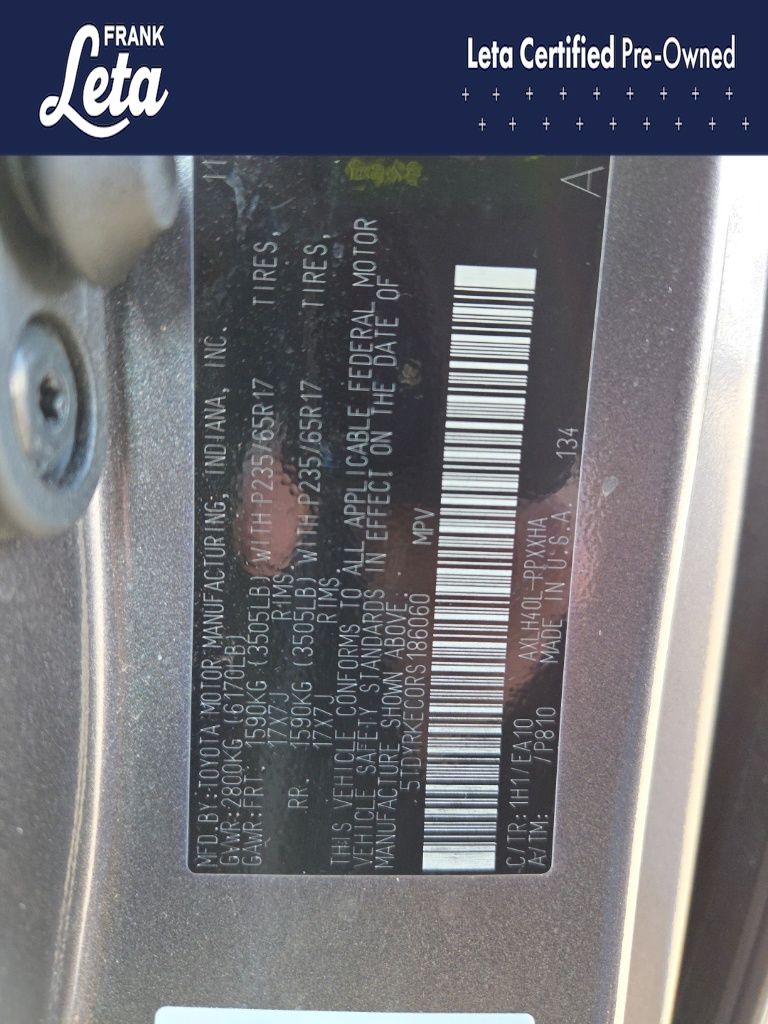 - VIN : 5TDYRKEC0RS186060