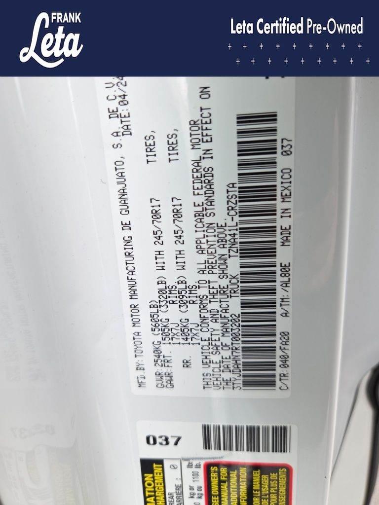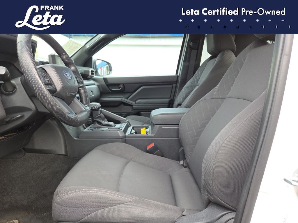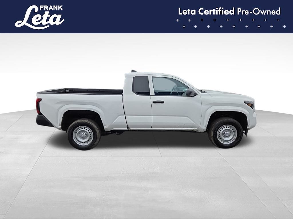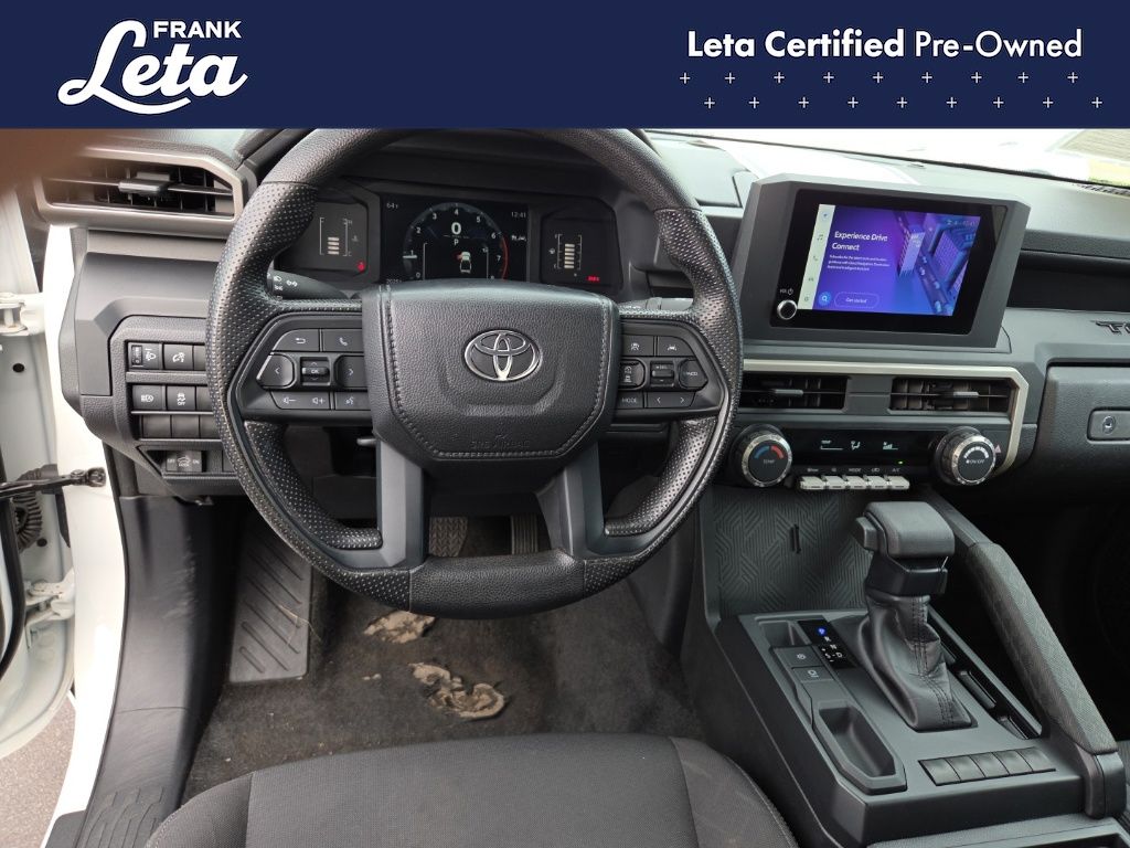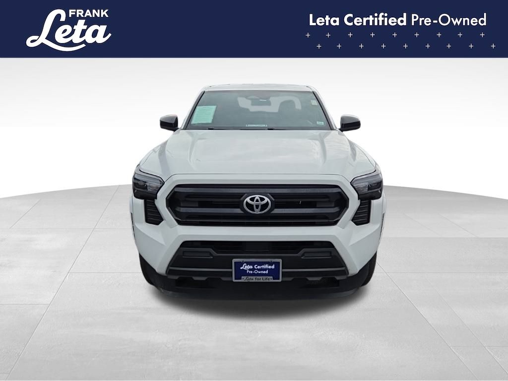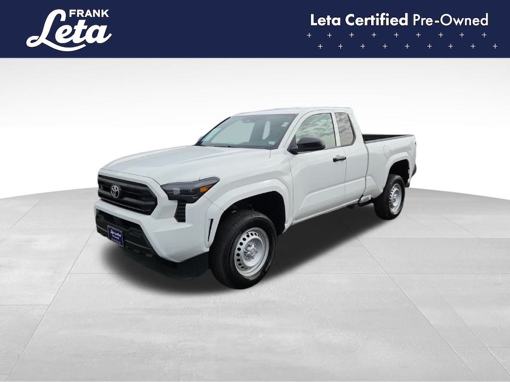 CARFAX One-Owner. 2024 Toyota Tacoma SR Ice Cap Tacoma SR, Frank Leta Certified Certified, 2.4L 4-Cylinder, Ice Cap, Black w/Fabric Seat Trim, Apple CarPlay/Android Auto, Exterior Parking Camera Rear, Fully automatic headlights, 17" Steel Wheels, 3.583 Axle Ratio, 4 Speakers, 4-Wheel Disc Brakes, ABS brakes, Air Conditioning, AM/FM radio: SiriusXM, Anti-whiplash front head restraints, Auto High-beam Headlights, Brake assist, Bumpers: body-color, Driver door bin, Dual front impact airbags, Dual front side impact airbags, Electronic Stability Control, Emergency communication system: Safety Connect (1-year trial), Fabric Seat Trim, Front anti-roll bar, Front Bucket Seats, Front Center Armrest, Front reading lights, Front wheel independent suspension, Heated door mirrors, Illuminated entry, Knee airbag, Low tire pressure warning, Occupant sensing airbag, Outside temperature display, Overhead airbag, Overhead console, Passenger door bin, Power door mirrors, Power steering, Power windows, Radio: 8" Toyota Audio Multimedia, Rear step bumper, Rear window defroster, Remote keyless entry, Speed control, Speed-sensing steering, Steering wheel mounted audio controls, Tachometer, Telescoping steering wheel, Tilt steering wheel, Traction control, Trip computer, Variably intermittent wipers, Tacoma SR, 2.4L 4-Cylinder, Ice Cap, Black w/Fabric Seat Trim, Apple CarPlay/Android Auto, Exterior Parking Camera Rear, Fully automatic headlights. 2.4L 4-Cylinder 8-Speed Automatic RWD Xtra Cab Odometer is 2828 miles below market average! 20/26 City/Highway MPG