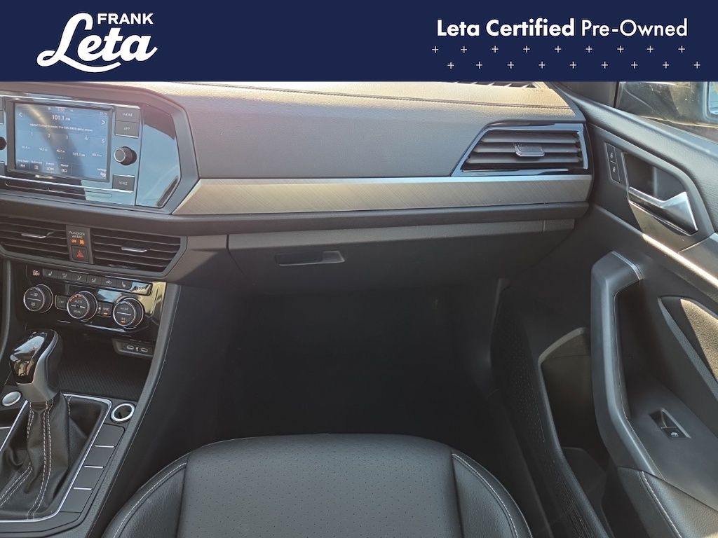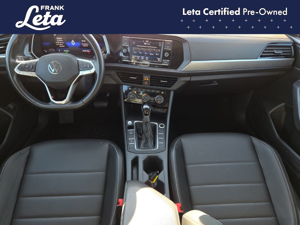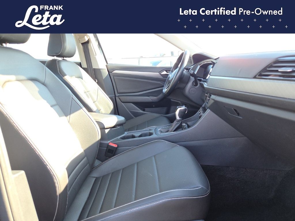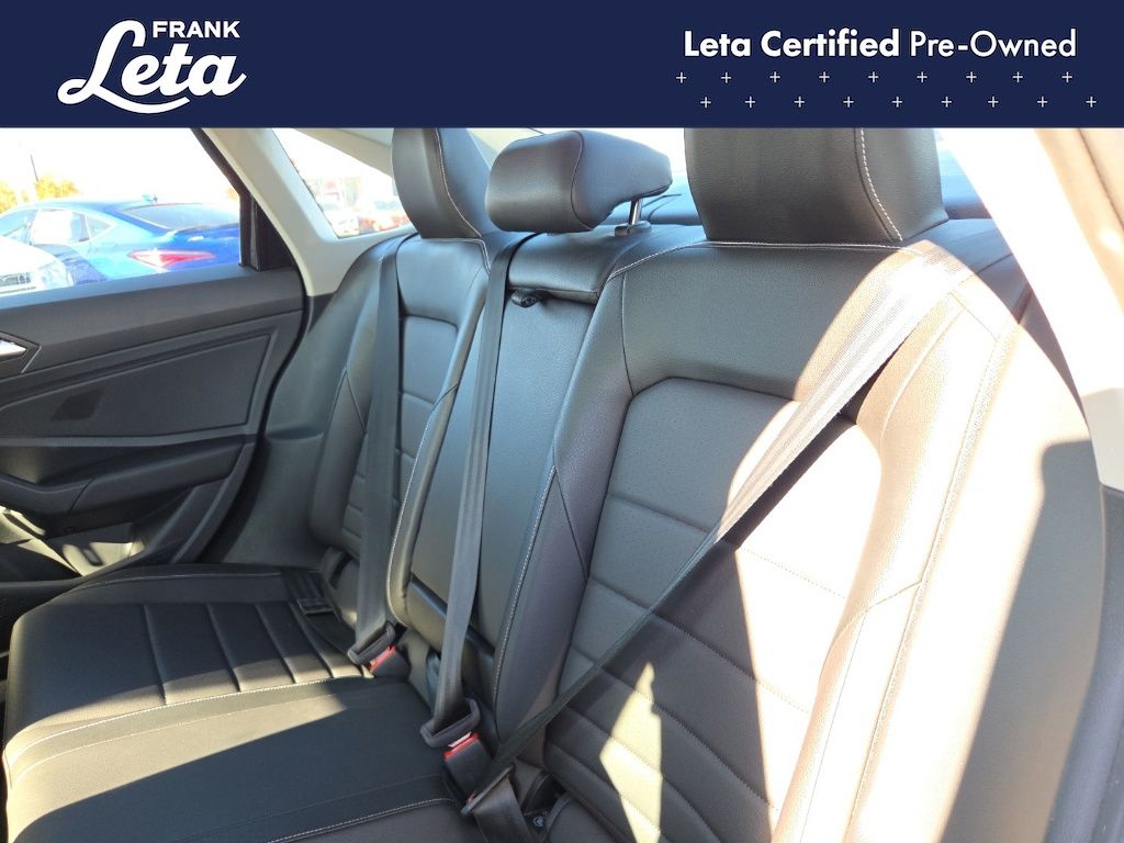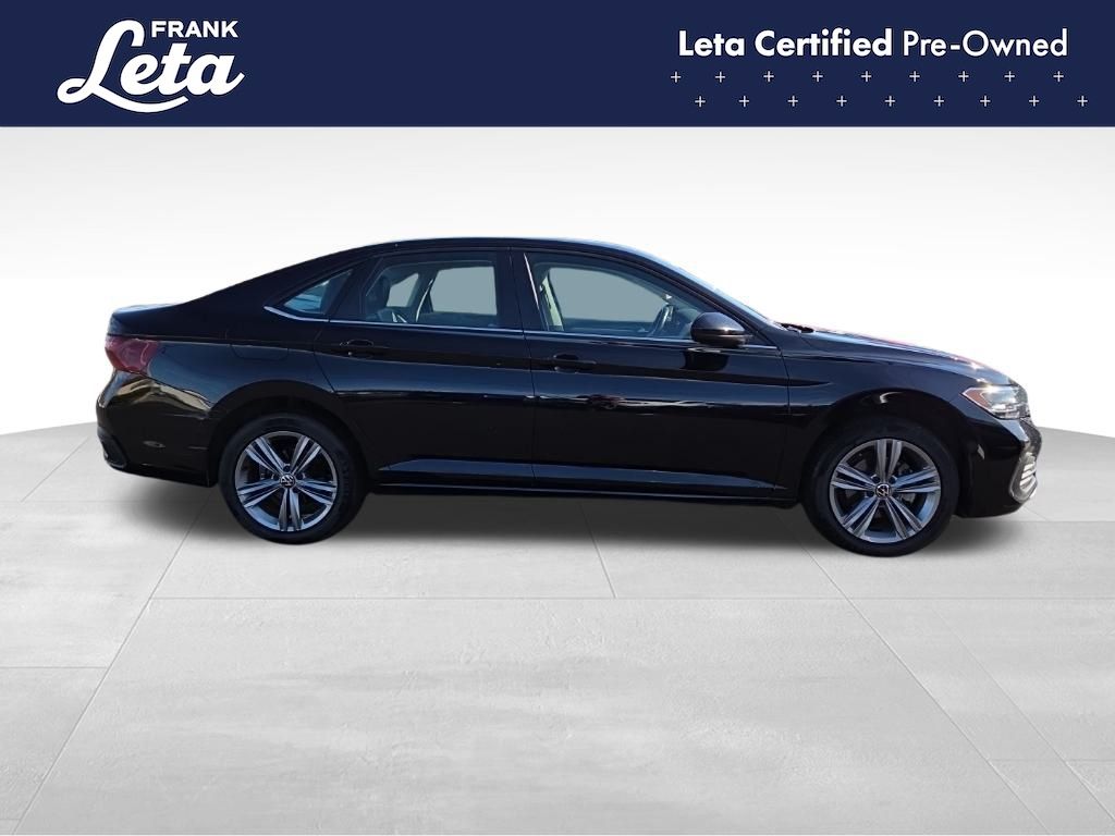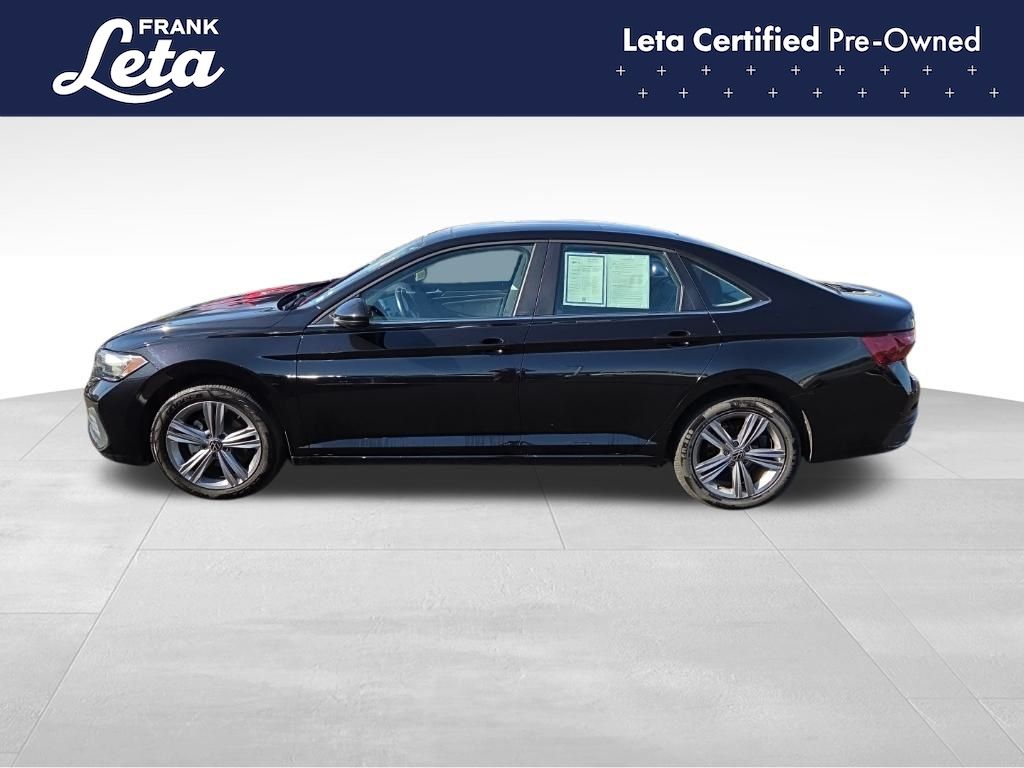 CARFAX One-Owner. 2024 Volkswagen Jetta 1.5T SE Deep Black Pearl Jetta 1.5T SE, Frank Leta Certified Certified, 1.5L I-4 DI DOHC Turbocharged, 8-Speed Automatic with Tiptronic, Deep Black Pearl, Titan Black w/V-Tex Leatherette Seat Trim, Auto-dimming Rear-View mirror, Exterior Parking Camera Rear, Front dual zone A/C, Fully automatic headlights, Heated Front Seats, V-Tex Leatherette Seat Trim, Wheels: 17" Twin 5-Spoke Silver Painted Alloy, 4 Speakers, 4-Wheel Disc Brakes, ABS brakes, Active Blind Spot Monitor, Air Conditioning, Automatic temperature control, Brake assist, Bumpers: body-color, Delay-off headlights, Driver door bin, Driver vanity mirror, Dual front impact airbags, Dual front side impact airbags, Electronic Stability Control, Emergency communication system: VW Car-Net Safe & Secure 5-year, Front anti-roll bar, Front Bucket Seats, Front Center Armrest, Front wheel independent suspension, Heated door mirrors, Heated front seats, Illuminated entry, Leather Shift Knob, Leather steering wheel, Low tire pressure warning, Occupant sensing airbag, Outside temperature display, Overhead airbag, Overhead console, Panic alarm, Passenger door bin, Passenger vanity mirror, Power door mirrors, Power driver seat, Power steering, Power windows, Radio data system, Radio: MIB3 Composition Color w/6.5" Touchscreen, Rain sensing wipers, Rear anti-roll bar, Rear reading lights, Rear seat center armrest, Rear window defroster, Remote keyless entry, Speed control, Speed-sensing steering, Split folding rear seat, Steering wheel mounted audio controls, Tachometer, Telescoping steering wheel, Tilt steering wheel, Traction control, Trip computer, Variably intermittent wipers, Jetta 1.5T SE, 1.5L I-4 DI DOHC Turbocharged, 8-Speed Automatic with Tiptronic, Deep Black Pearl, Titan Black w/V-Tex Leatherette Seat Trim, Auto-dimming Rear-View mirror, Exterior Parking Camera Rear, Front dual zone A/C, Fully automatic headlights, Heated Front Seats, V-Tex Leatherette Seat Trim, Wheels: 17" Twin 5-Spoke Silver Painted Alloy. 1.5L I-4 DI DOHC Turbocharged 8-Speed Automatic with Tiptronic FWD 4D Sedan 29/40 City/Highway MPG