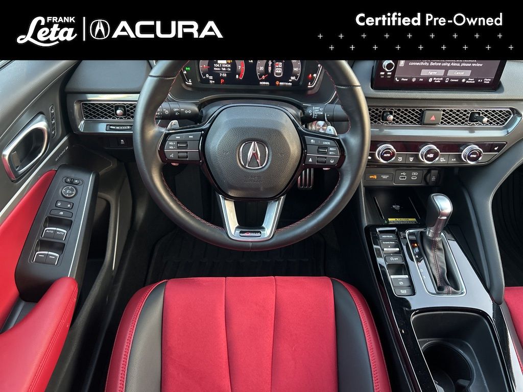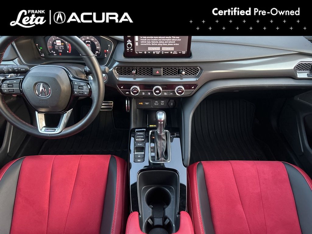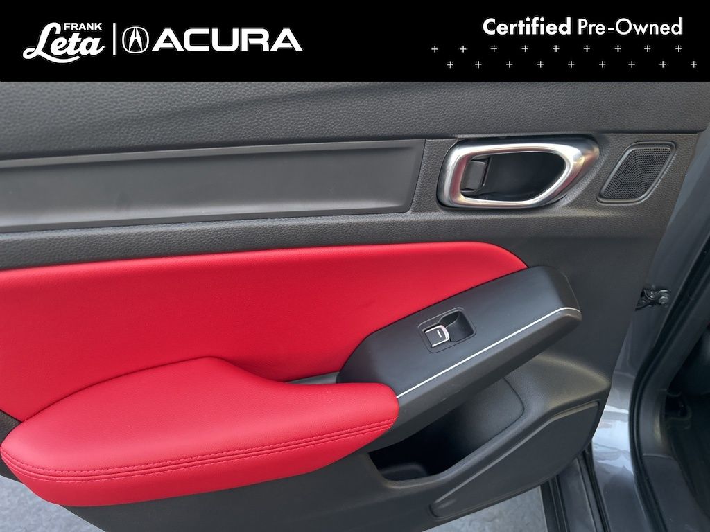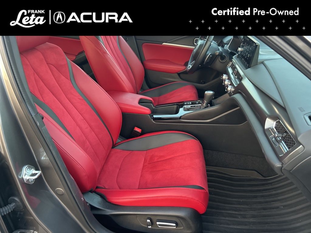 2025 Acura Integra A-Spec Tech Package Liquid Carbon Metallic Integra A-Spec Tech Package, Precision Certified Certified, 1.5L I4 DOHC 16V, Liquid Carbon Metallic, Red w/Perforated Ultrasuede-Trimmed Front Seats, 16 Speakers, 18" Aluminum Alloy Wheels, Apple CarPlay/Android Auto, Auto-dimming Rear-View mirror, Front dual zone A/C, Front fog lights, Fully automatic headlights, Heads-Up Display, Heated front seats, Lane departure: Lane Keeping Assist System (LKAS) active, Memory seat, Power moonroof, Radio: ELS Studio 3D Premium Audio System, 4-Wheel Disc Brakes, ABS brakes, Adaptive suspension, Air Conditioning, AM/FM radio: SiriusXM, Auto High-beam Headlights, Automatic temperature control, Brake assist, Bumpers: body-color, Compass, Delay-off headlights, Driver door bin, Driver vanity mirror, Dual front impact airbags, Dual front side impact airbags, Electronic Stability Control, Emergency communication system: AcuraLink (subscription required), Four wheel independent suspension, Front anti-roll bar, Front Bucket Seats, Front Center Armrest, Front reading lights, Heated door mirrors, Heated Front Bucket Seats, Illuminated entry, Knee airbag, Leather Shift Knob, Leather steering wheel, Low tire pressure warning, Microsuede-Trimmed Front Seats w/Exclusive Stitch, Occupant sensing airbag, Outside temperature display, Overhead airbag, Overhead console, Panic alarm, Passenger door bin, Passenger vanity mirror, Power door mirrors, Power driver seat, Power passenger seat, Power steering, Power windows, Radio data system, Rain sensing wipers, Rear anti-roll bar, Rear seat center armrest, Rear side impact airbag, Rear window defroster, Remote keyless entry, Security system, Speed control, Speed-sensing steering, Speed-Sensitive Wipers, Split folding rear seat, Spoiler, Steering wheel mounted audio controls, Tachometer, Telescoping steering wheel, Tilt steering wheel, Traction control, Trip computer, Turn signal indicator mirrors, Variably intermittent wipers, Integra A-Spec Tech Package, 1.5L I4 DOHC 16V, Liquid Carbon Metallic, Red w/Perforated Ultrasuede-Trimmed Front Seats, 16 Speakers, 18" Aluminum Alloy Wheels, Apple CarPlay/Android Auto, Auto-dimming Rear-View mirror, Front dual zone A/C, Front fog lights, Fully automatic headlights, Heads-Up Display, Heated front seats, Lane departure: Lane Keeping Assist System (LKAS) active, Memory seat, Power moonroof, Radio: ELS Studio 3D Premium Audio System. 1.5L I4 DOHC 16V CVT FWD 4D Hatchback 29/36 City/Highway MPG