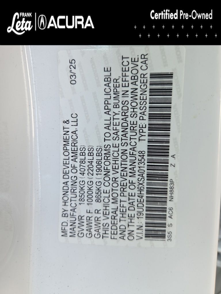 2025 Acura Integra A-Spec Tech Package Platinum White Pearl Integra A-Spec Tech Package, Precision Certified Certified, 1.5L I4 DOHC 16V, Platinum White Pearl, Ebony w/Perforated Ultrasuede-Trimmed Front Seats, 16 Speakers, 18" Aluminum Alloy Wheels, 4-Wheel Disc Brakes, ABS brakes, Adaptive suspension, Air Conditioning, Alloy wheels, AM/FM radio: SiriusXM, Apple CarPlay/Android Auto, Auto High-beam Headlights, Auto-dimming Rear-View mirror, Automatic temperature control, Brake assist, Bumpers: body-color, Compass, Delay-off headlights, Driver door bin, Driver vanity mirror, Dual front impact airbags, Dual front side impact airbags, Electronic Stability Control, Emergency communication system: AcuraLink (subscription required), Four wheel independent suspension, Front anti-roll bar, Front Bucket Seats, Front Center Armrest, Front dual zone A/C, Front fog lights, Front reading lights, Fully automatic headlights, Heads-Up Display, Heated door mirrors, Heated Front Bucket Seats, Heated front seats, Illuminated entry, Knee airbag, Lane departure: Lane Keeping Assist System (LKAS) active, Leather Shift Knob, Leather steering wheel, Low tire pressure warning, Memory seat, Microsuede-Trimmed Front Seats w/Exclusive Stitch, Occupant sensing airbag, Outside temperature display, Overhead airbag, Overhead console, Panic alarm, Passenger door bin, Passenger vanity mirror, Power door mirrors, Power driver seat, Power moonroof, Power passenger seat, Power steering, Power windows, Radio data system, Radio: ELS Studio 3D Premium Audio System, Rain sensing wipers, Rear anti-roll bar, Rear seat center armrest, Rear side impact airbag, Rear window defroster, Remote keyless entry, Security system, Speed control, Speed-sensing steering, Speed-Sensitive Wipers, Split folding rear seat, Spoiler, Steering wheel mounted audio controls, Tachometer, Telescoping steering wheel, Tilt steering wheel, Traction control, Trip computer, Turn signal indicator mirrors, Variably intermittent wipers, Integra A-Spec Tech Package, 1.5L I4 DOHC 16V, Platinum White Pearl, Ebony w/Perforated Ultrasuede-Trimmed Front Seats. 1.5L I4 DOHC 16V CVT FWD 4D Hatchback 29/36 City/Highway MPG