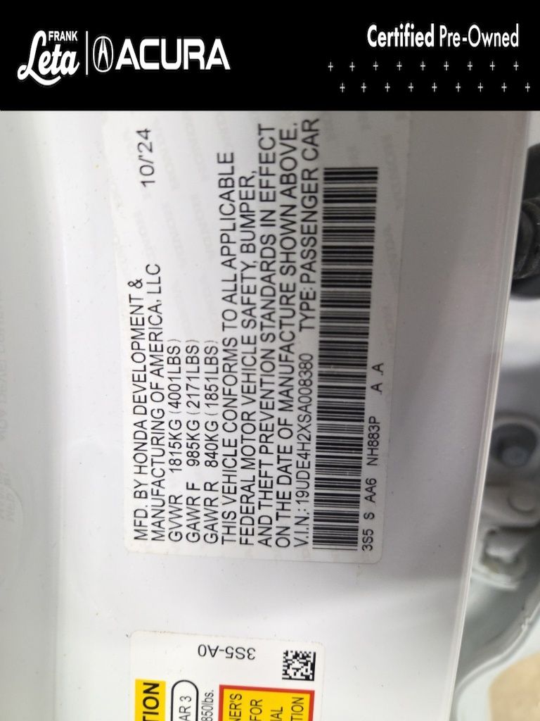 2025 Acura Integra Platinum White Pearl Precision Certified Certified, 17" Aluminum Alloy Wheels, 4-Wheel Disc Brakes, Apple CarPlay/Android Auto, Auto-dimming Rear-View mirror, Delay-off headlights, Front dual zone A/C, Fully automatic headlights, Heated door mirrors, Heated front seats, Lane departure: Lane Keeping Assist System (LKAS) active, Power moonroof, 8 Speakers, ABS brakes, Air Conditioning, AM/FM radio, Auto High-beam Headlights, Automatic temperature control, Brake assist, Bumpers: body-color, Compass, Driver door bin, Driver vanity mirror, Dual front impact airbags, Dual front side impact airbags, Electronic Stability Control, Four wheel independent suspension, Front anti-roll bar, Front Bucket Seats, Front Center Armrest, Front reading lights, Heated Front Bucket Seats, Illuminated entry, Knee airbag, Leather Shift Knob, Leather steering wheel, Leatherette-Trimmed Seating Surfaces, Low tire pressure warning, Occupant sensing airbag, Outside temperature display, Overhead airbag, Overhead console, Panic alarm, Passenger door bin, Passenger vanity mirror, Power door mirrors, Power driver seat, Power steering, Power windows, Radio data system, Radio: Acura Premium Audio System, Rear anti-roll bar, Rear seat center armrest, Rear side impact airbag, Rear window defroster, Remote keyless entry, Security system, Speed control, Speed-sensing steering, Speed-Sensitive Wipers, Split folding rear seat, Steering wheel mounted audio controls, Tachometer, Telescoping steering wheel, Tilt steering wheel, Traction control, Trip computer, Variably intermittent wipers, 17" Aluminum Alloy Wheels, 4-Wheel Disc Brakes, Apple CarPlay/Android Auto, Auto-dimming Rear-View mirror, Delay-off headlights, Front dual zone A/C, Fully automatic headlights, Heated door mirrors, Heated front seats, Lane departure: Lane Keeping Assist System (LKAS) active, Power moonroof. 1.5L I4 DOHC 16V CVT FWD 4D Hatchback 30/37 City/Highway MPG