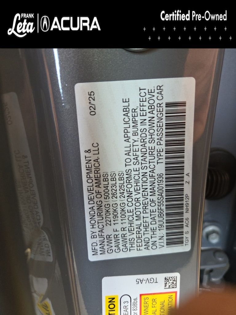 2025 Acura TLX A-Spec Package SH-AWD Urban Gray Pearl TLX A-Spec Package SH-AWD, Precision Certified Certified, 2.0L DOHC, AWD, Urban Gray Pearl, Ebony w/Premium Perf Milano Leather & Ultrasuede Interior, 17 Speakers, 4-Wheel Disc Brakes, ABS brakes, Acura Navigation System w/3D View, Air Conditioning, Alloy wheels, AM/FM radio: SiriusXM, Anti-whiplash front head restraints, Apple CarPlay/Android Auto, Auto High-beam Headlights, Auto-dimming Rear-View mirror, Automatic temperature control, Brake assist, Bumpers: body-color, Compass, Delay-off headlights, Driver door bin, Driver vanity mirror, Dual front impact airbags, Dual front side impact airbags, Electronic Stability Control, Emergency communication system: AcuraLink, Exterior Parking Camera Rear, Four wheel independent suspension, Front anti-roll bar, Front Bucket Seats, Front Center Armrest w/Storage, Front dual zone A/C, Front fog lights, Front reading lights, Garage door transmitter: HomeLink, Heated & Ventilated Front Sport Seats, Heated door mirrors, Heated front seats, HVAC memory, Illuminated entry, Knee airbag, Lane departure: Lane Keeping Assist System (LKAS) active, Leather steering wheel, Low tire pressure warning, Memory seat, Navigation system: Acura Navigation System with 3D View, Occupant sensing airbag, Outside temperature display, Overhead airbag, Overhead console, Panic alarm, Passenger door bin, Passenger vanity mirror, Power door mirrors, Power driver seat, Power moonroof, Power passenger seat, Power steering, Power windows, Premium audio system: Acura/ELS Surround, Premium Perf Milano Leather & Ultrasuede Interior, Radio data system, Radio: ELS Studio 3D Premium Audio System, Rear anti-roll bar, Rear reading lights, Rear seat center armrest, Rear window defroster, Remote keyless entry, Security system, Speed control, Speed-sensing steering, Speed-Sensitive Wipers, Split folding rear seat, Spoiler, Sport steering wheel, Steering wheel mounted audio controls, Tachometer, Telescoping steering wheel, Tilt steering wheel, Traction control, Trip computer, Turn signal indicator mirrors, Variably intermittent wipers, Ventilated front seats, Wheels: 19" x 8.5" Shark Gray Aluminum-Alloy, TLX A-Spec Package SH-AWD, 2.0L DOHC, AWD, Urban Gray Pearl, Ebony w/Premium Perf Milano Leather & Ultrasuede Interior. 2.0L DOHC 10-Speed Automatic AWD 4D Sedan 21/29 City/Highway MPG