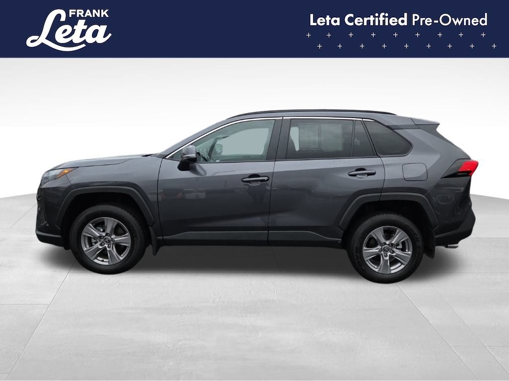 CARFAX One-Owner. 2025 Toyota RAV4 XLE Magnetic Gray Metallic RAV4 XLE, Frank Leta Certified Certified, 2.5L 4-Cylinder DOHC Dual VVT-i, Magnetic Gray Metallic, Black w/Fabric Seat Trim, Exterior Parking Camera Rear, Front dual zone A/C, Fully automatic headlights, Heated door mirrors, Wheels: 17" 5-Spoke Silver Alloy, 4-Wheel Disc Brakes, 6 Speakers, ABS brakes, Air Conditioning, AM/FM radio: SiriusXM, Auto High-beam Headlights, Automatic temperature control, Brake assist, Bumpers: body-color, Delay-off headlights, Driver door bin, Driver vanity mirror, Dual front impact airbags, Dual front side impact airbags, Electronic Stability Control, Emergency communication system: Safety Connect (10-year trial), Fabric Seat Trim, Four wheel independent suspension, Front anti-roll bar, Front Bucket Seats, Front Center Armrest, Front reading lights, Illuminated entry, Knee airbag, Low tire pressure warning, Occupant sensing airbag, Outside temperature display, Overhead airbag, Overhead console, Panic alarm, Passenger door bin, Passenger vanity mirror, Power door mirrors, Power driver seat, Power steering, Power windows, Radio data system, Radio: AM/FM/XM Audio System, Rear anti-roll bar, Rear seat center armrest, Rear window defroster, Rear window wiper, Remote keyless entry, Speed control, Speed-sensing steering, Split folding rear seat, Spoiler, Steering wheel mounted audio controls, Tachometer, Telescoping steering wheel, Tilt steering wheel, Traction control, Trip computer, Turn signal indicator mirrors, Variably intermittent wipers, RAV4 XLE, 2.5L 4-Cylinder DOHC Dual VVT-i, Magnetic Gray Metallic, Black w/Fabric Seat Trim, Exterior Parking Camera Rear, Front dual zone A/C, Fully automatic headlights, Heated door mirrors, Wheels: 17" 5-Spoke Silver Alloy. 2.5L 4-Cylinder DOHC Dual VVT-i 8-Speed Automatic FWD 4D Sport Utility Odometer is 17193 miles below market average! 27/35 City/Highway MPG
