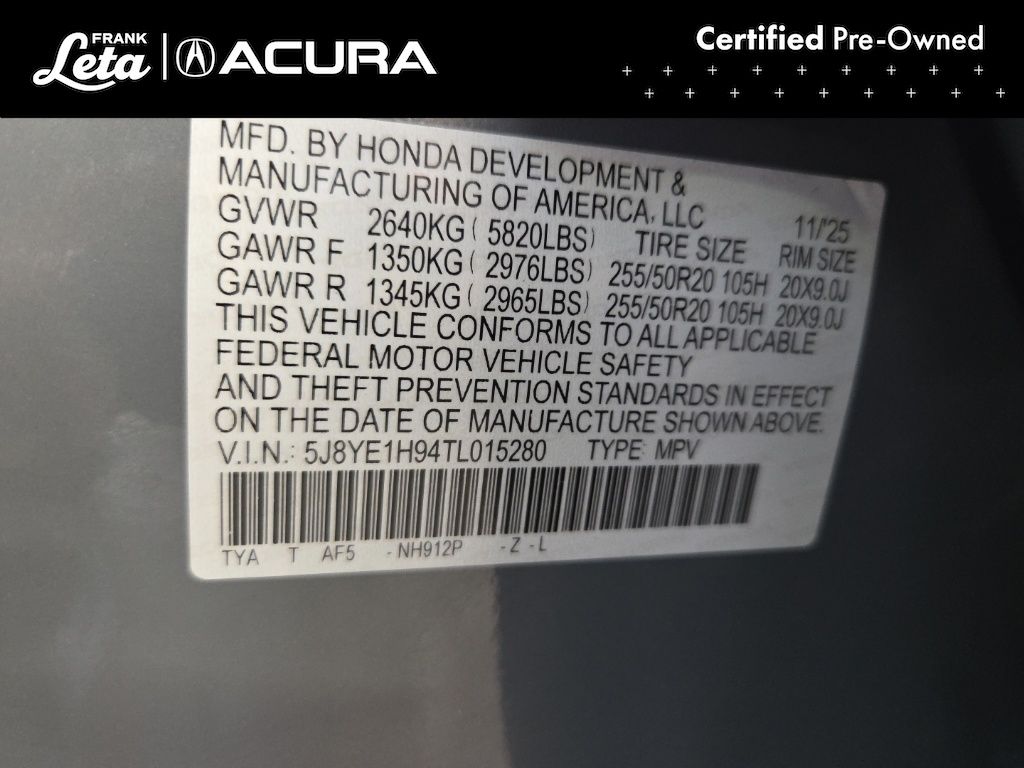 - VIN : 5J8YE1H94TL015280